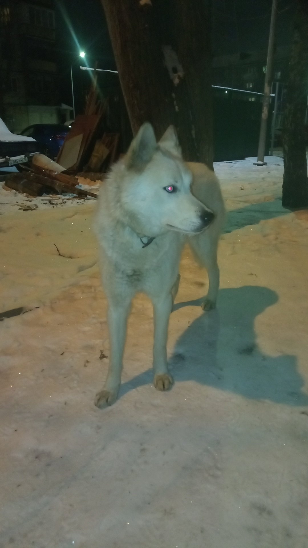 На Пермякова 14 бегает собака. Предположительно девочка, очень пугливая, бегает вокруг, будто ищет еду или потерялась. Есть ошейник бежевого/белого/розоватого цвета, а темноте трудно разглядеть. Может быть её кто нибудь ищет