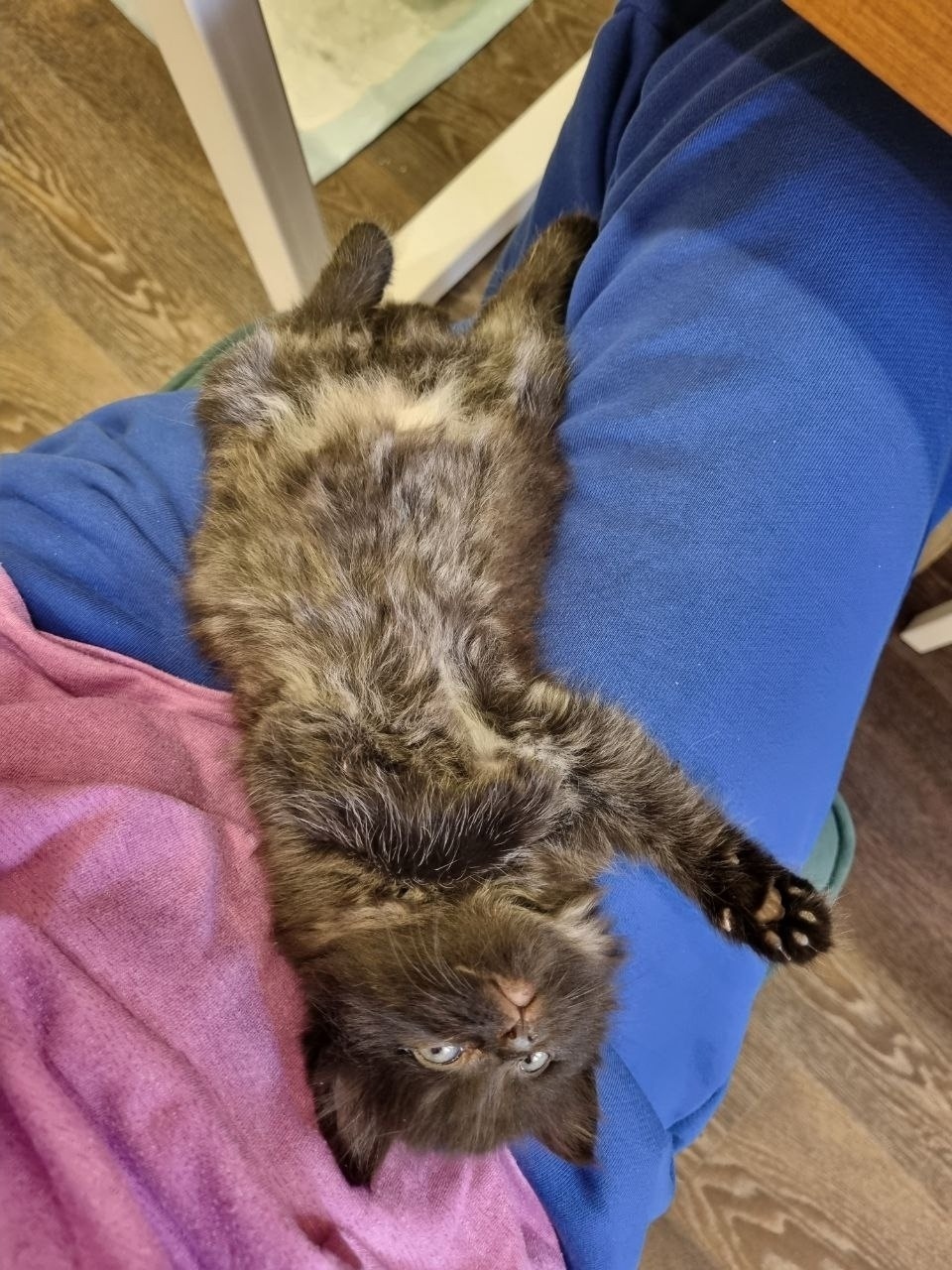 Котёнок-девочка, найден на улице, помыт обработан от паразитов. Пушистая. Здоровая. 8 недель на вид. Вылечили лишай. Шерстка местами выпала и начала расти новая. Готова будет к отдаче 13 ноября.