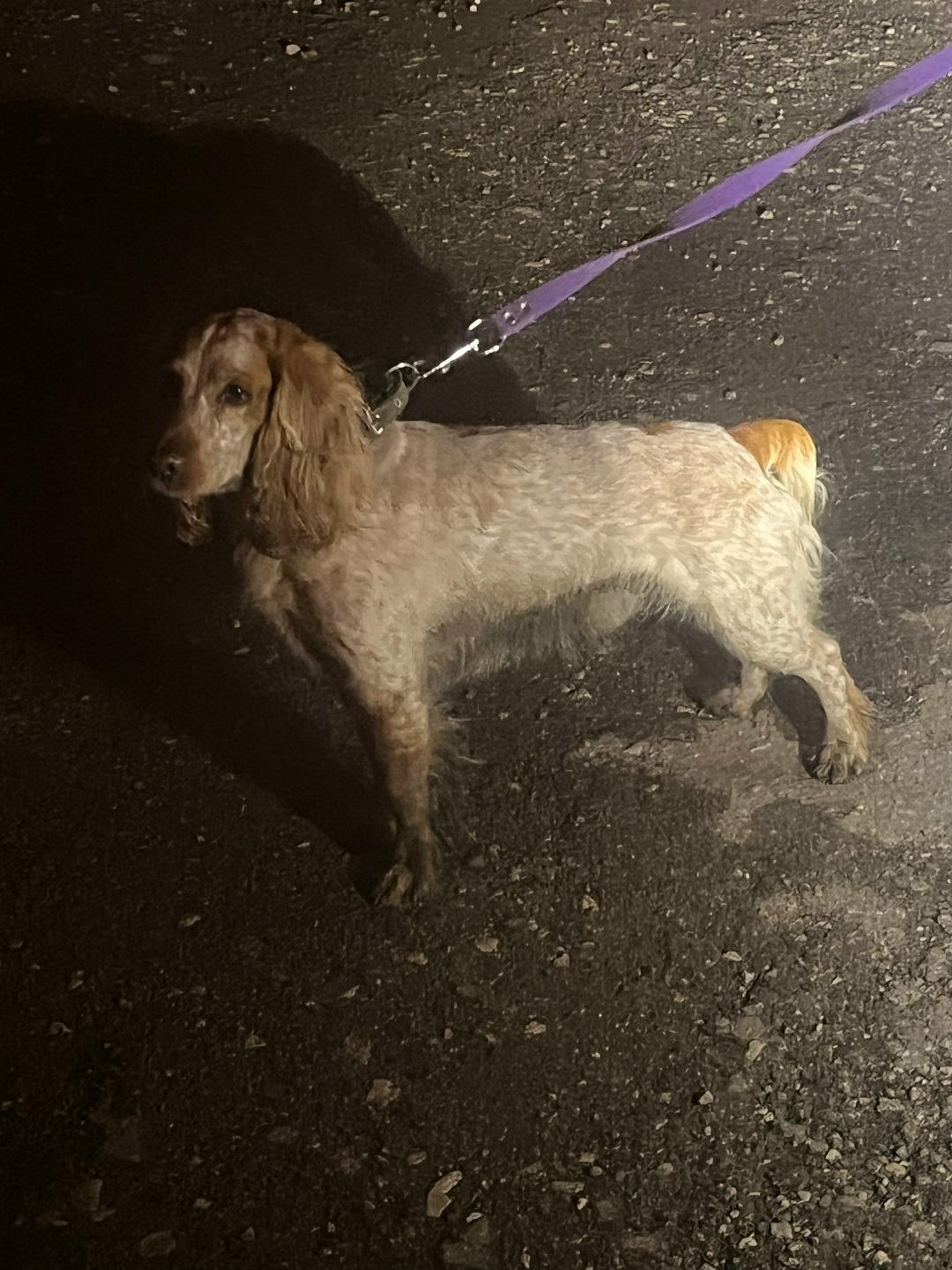 Найдена собака, кобель похож на спаниеля 30.11 в 18.15 бежал по проезжей части в новый город по Лесопарковому шоссе.