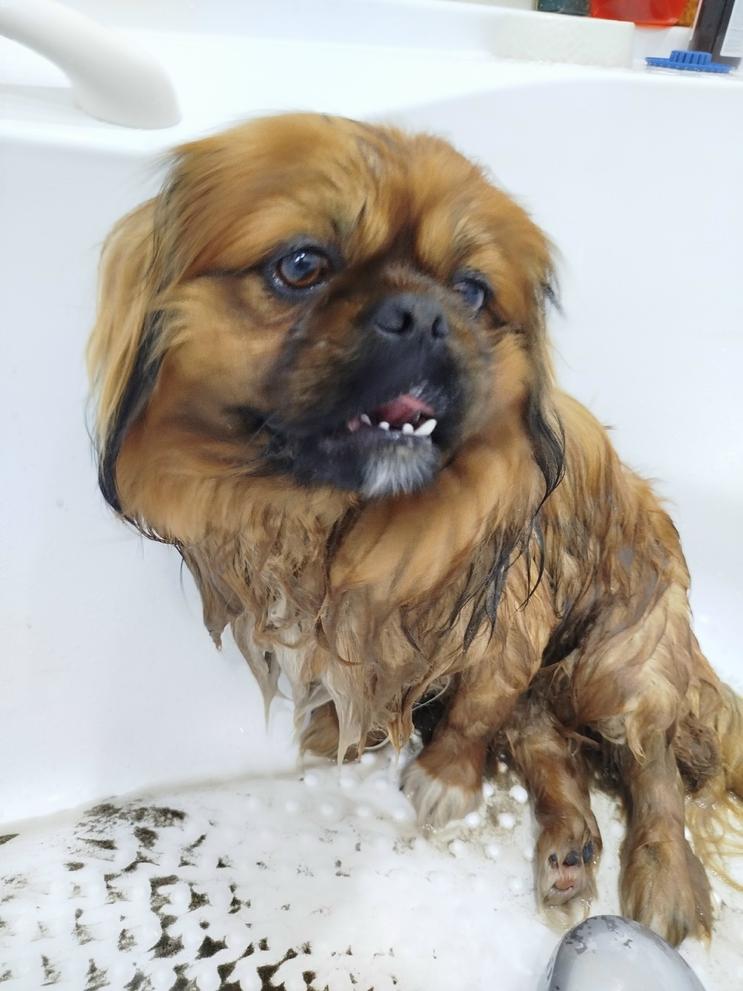 Найден пекинес в районе Жил площадки - 9 апреля в 22 часа. Кобель, судя по белоснежным зубам, молодой. Ухоженный, расчесанный. Собака явно домашняя.