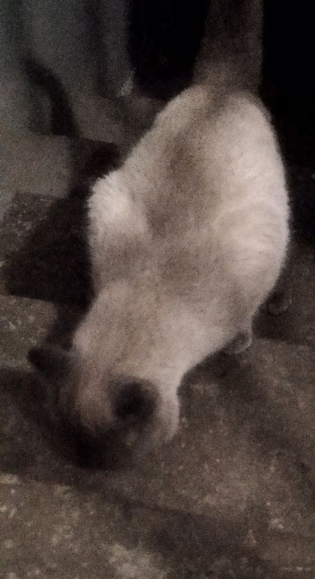 К себе нашедшие его люди взять не смогли, он боится собак, а у них двое. Пока что просто дали воды и еды, остался в подъезде.
