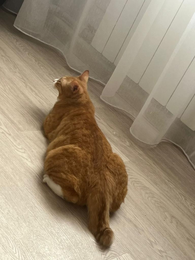Кот взрослый, крупный, породы бобтейл (с коротким хвостом).