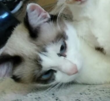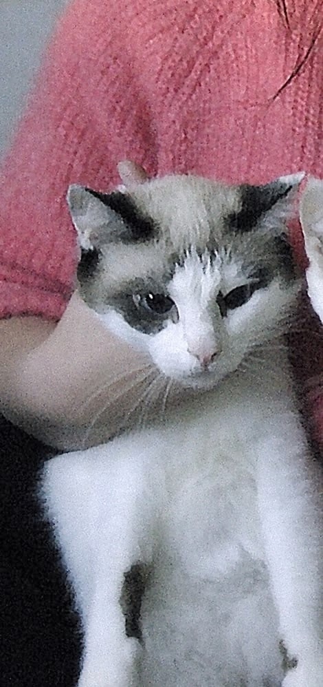 ❗❗❗Потерялась кошка , окрас белый с серыми пятнами глаза голубые (у кошечки косоглазие) , была в ошейники белого (прозрачного) цвета с розовыми сердечками и колокольчиком , ошейник в темноте светится зеленым .