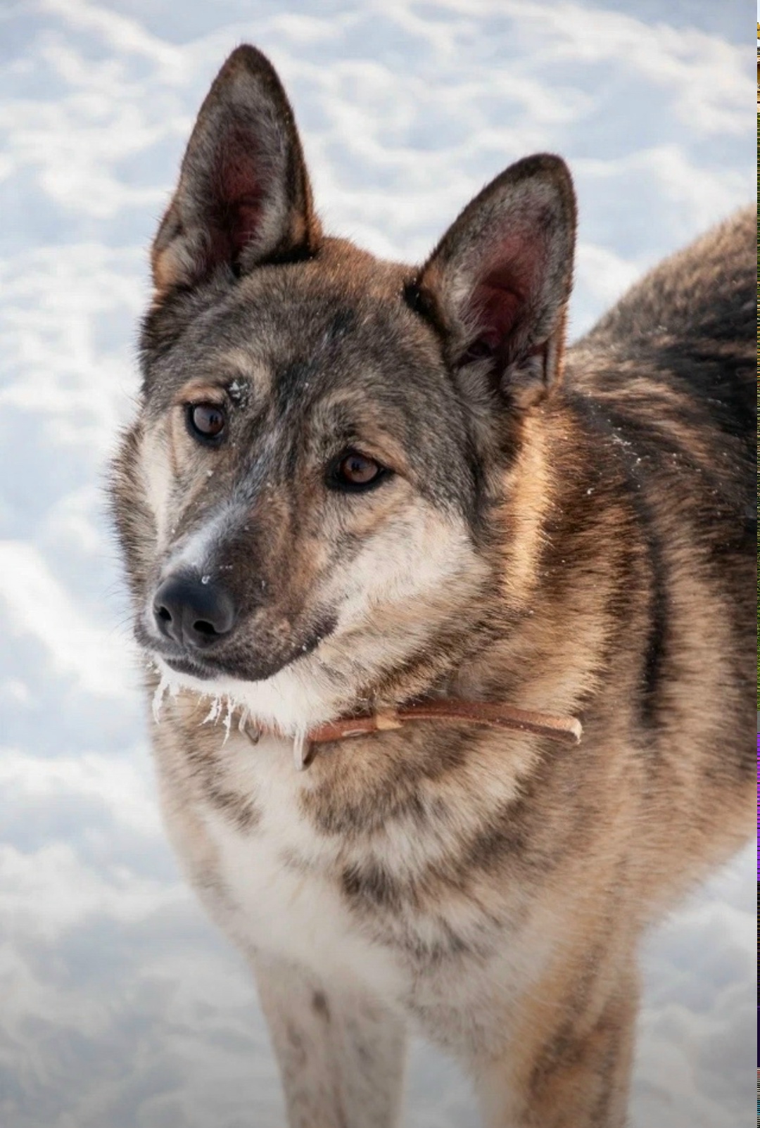 Приметы: кличка Ева, пугливая, на ошейнике, в котором она на фото, может быть кусок черного поводка, также на ошейнике есть капсула с адресником.