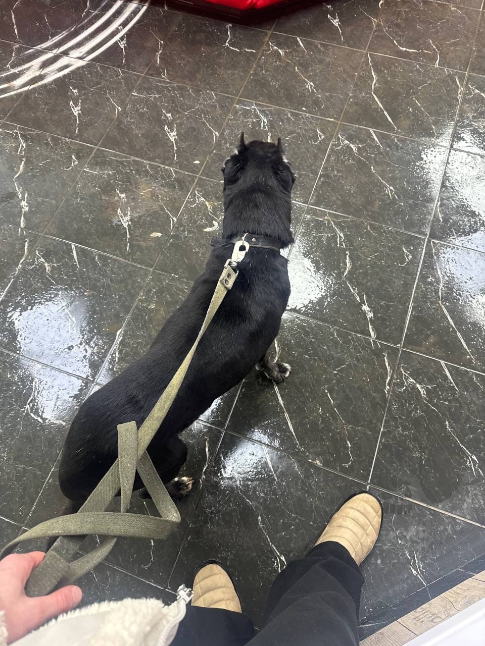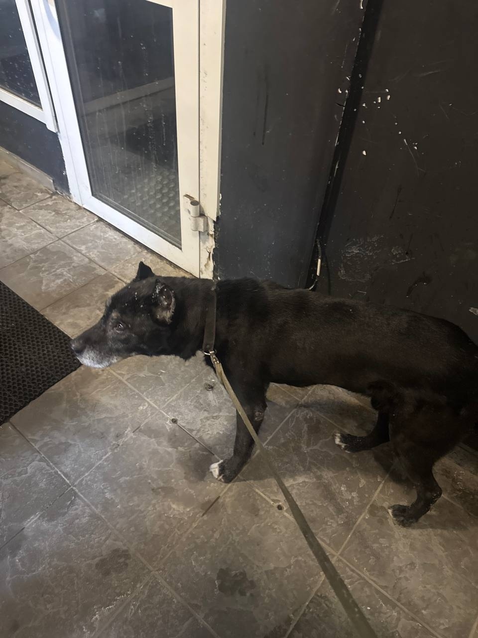 Найден пес на улице Холмогорова, черный, купированный, с поводком и ошейником