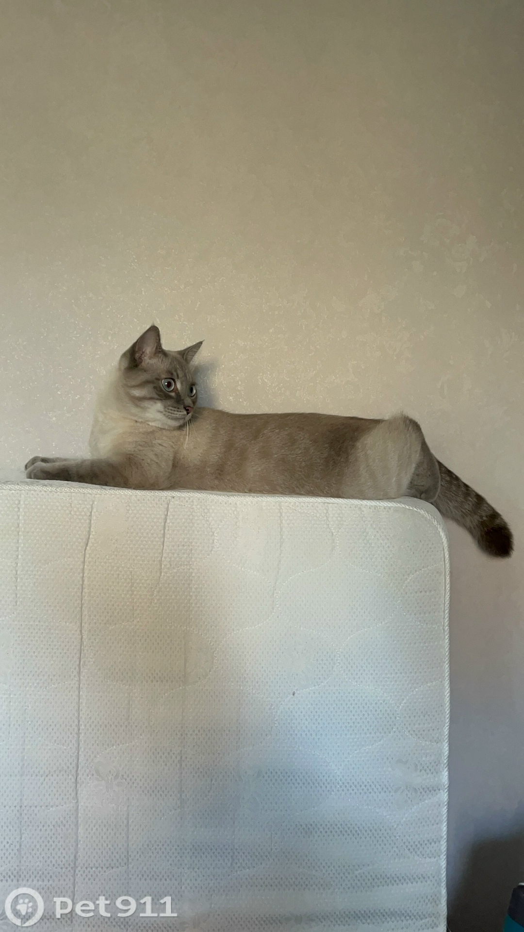 Светлый кремовый окрас, по холке и хвост темно-серый. Очень домашний, пугливый кот. Недавно переехал в частный дом.