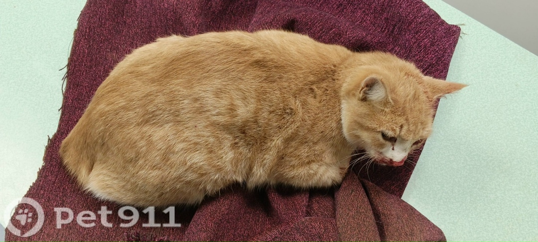 Рыженький кот был найден травмирован на краю дороги ведущей к дому 16 с