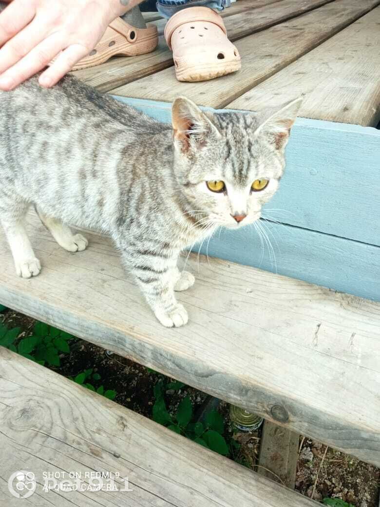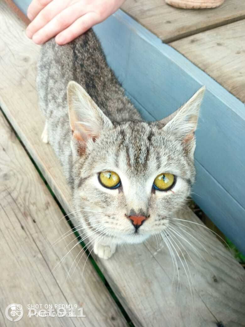 Найден молодой котик ,очень спокойный и ласковый. По повадкам очень привязан к хозяину ,прямо как собачка . Найден в районе Снт Заря