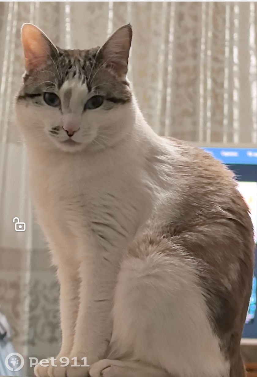 Ушёл утром и не вернулся кот 2 года. Откликается на Фил. Не кастрированный, но дисцилинированый, чистоплотный. Без породы, есть примесь бобтейла. Грудка белая, глаза со стрелочками-светлые, сверху бежевый окрас фигуристый, щекастый. Добрый.