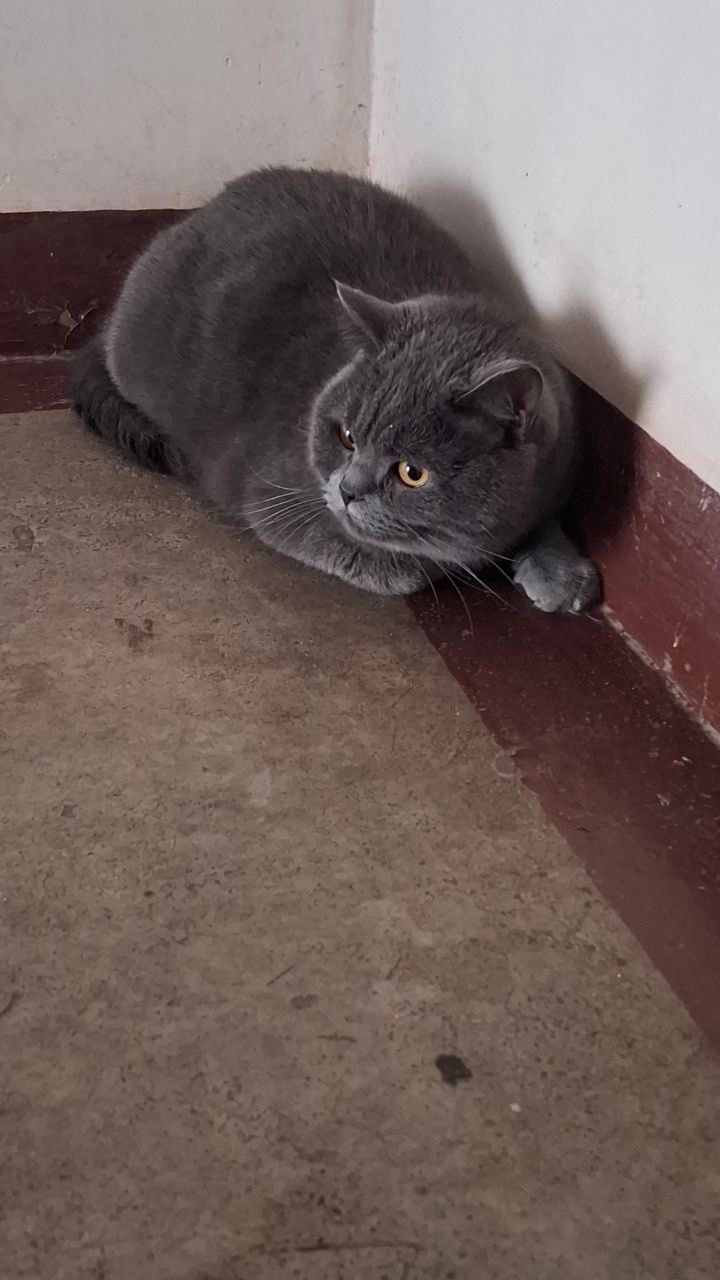 Найден кот, британец скорее всего, серый, в 1 подъезде по адресу Ильюшина 5, ищем хозяев