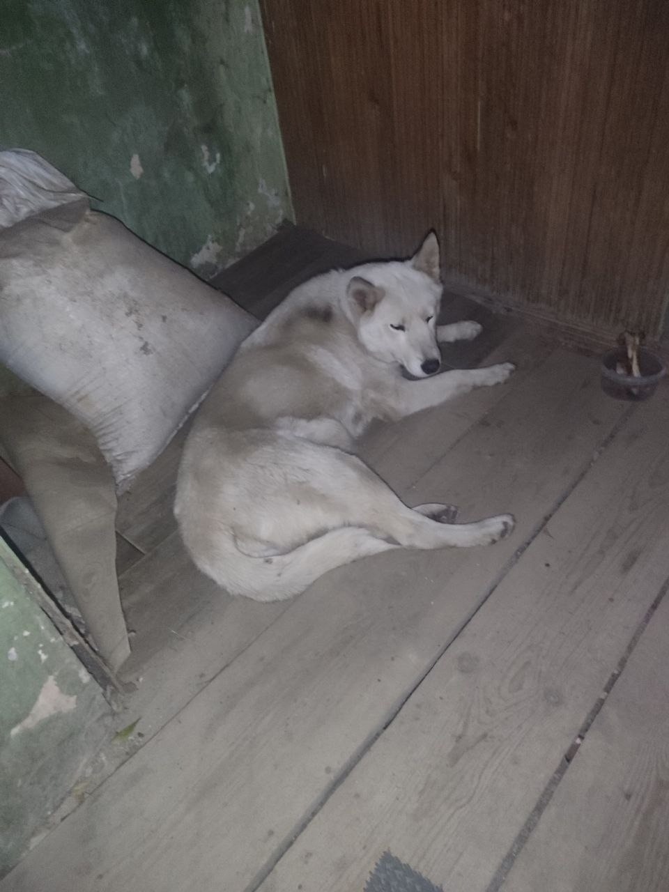 Собака точно домашняя ,знает лежанку и охраняет ее . Знает подъезд!!!
