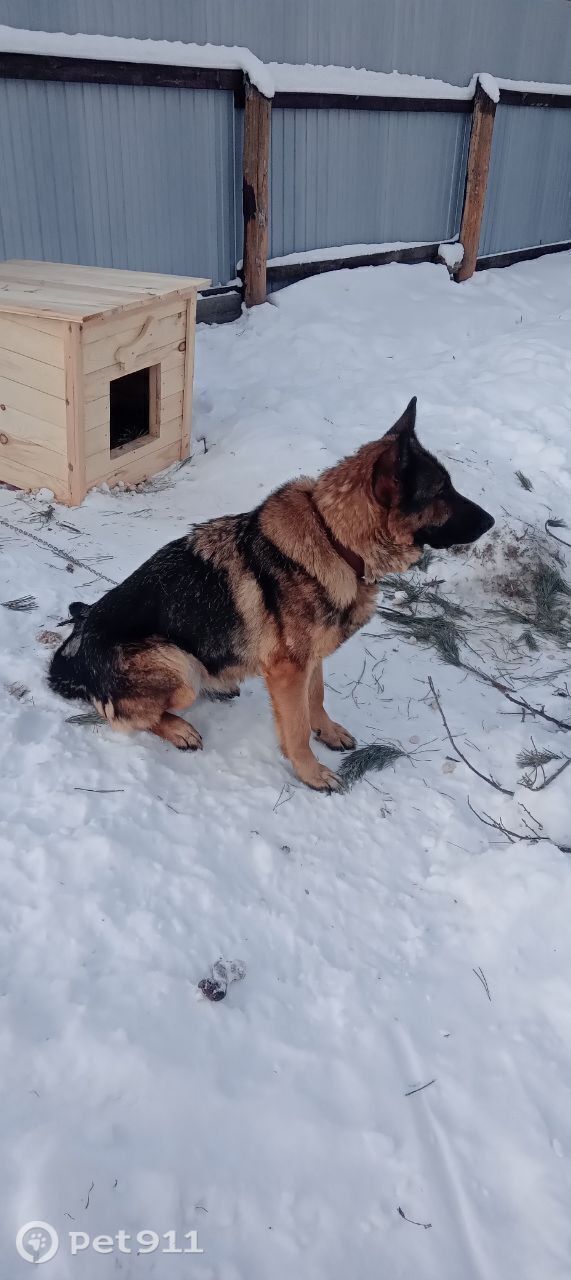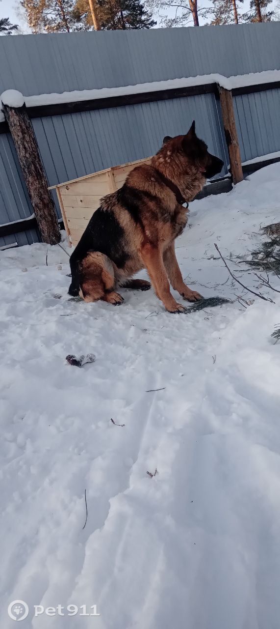 Немецкая овчарка. Очень воспитанная, знает команды, предположительно в течке. Сама запрыгнула в машину