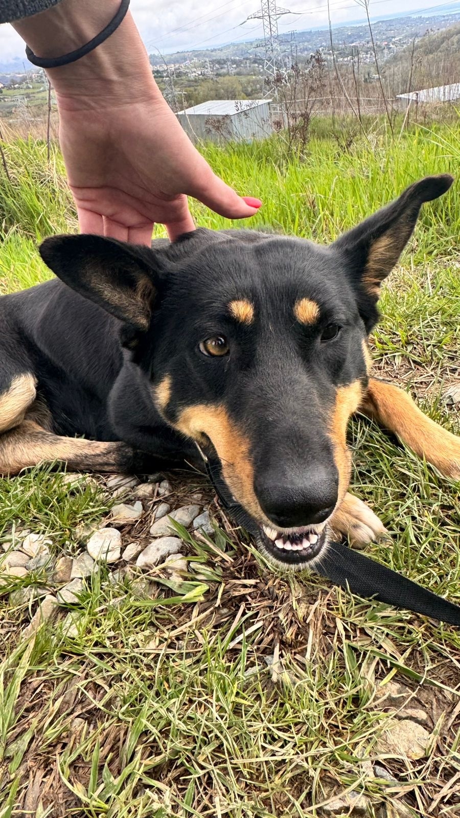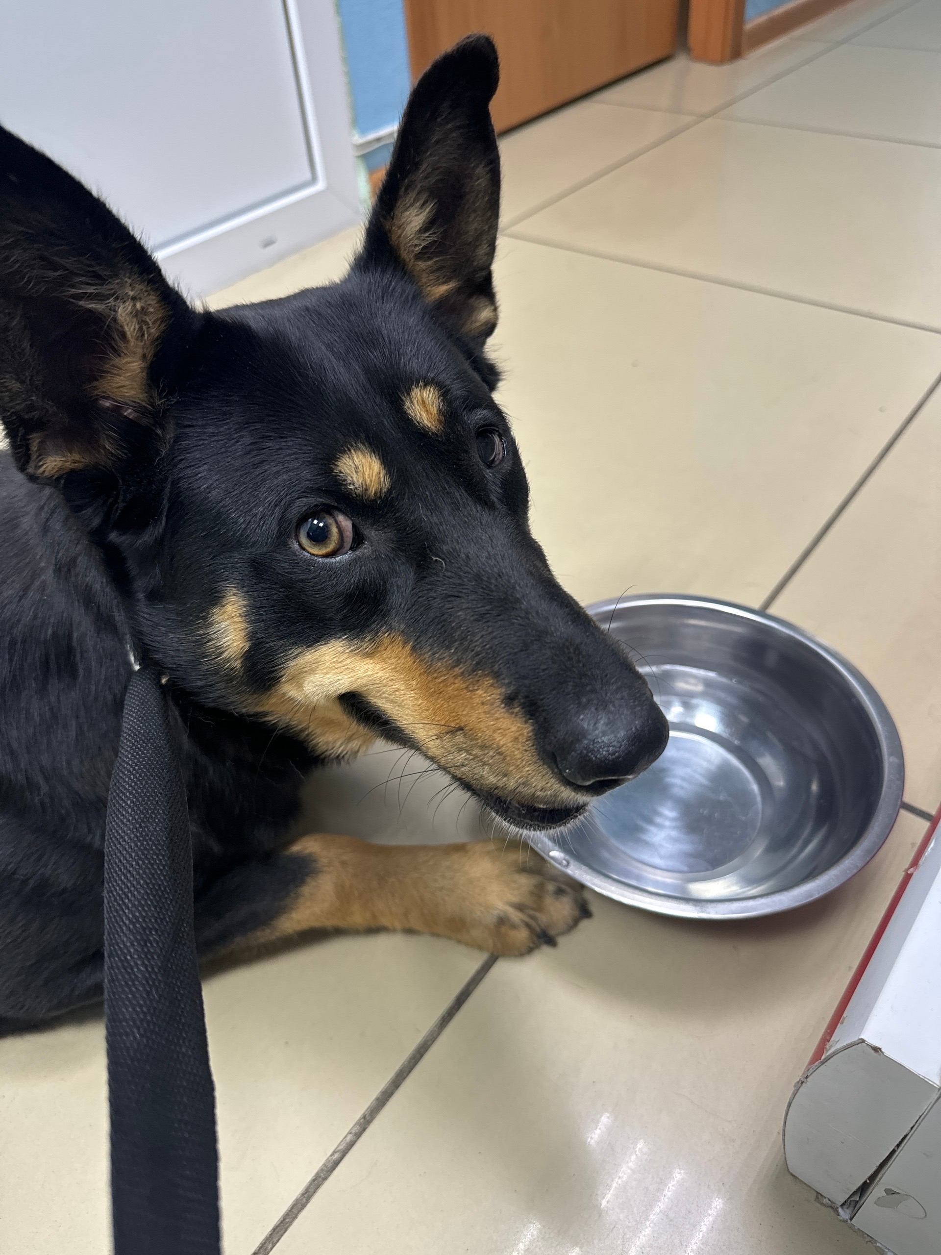 Здравствуйте! Помогите, пожалуйста, пристроить щенка-девочку. Нашли её сегодня на мусорке — кто-то выбросил (центральный район Сочи). Сейчас временно у меня, отмыта, в тепле и накормлена. Очень ласков
