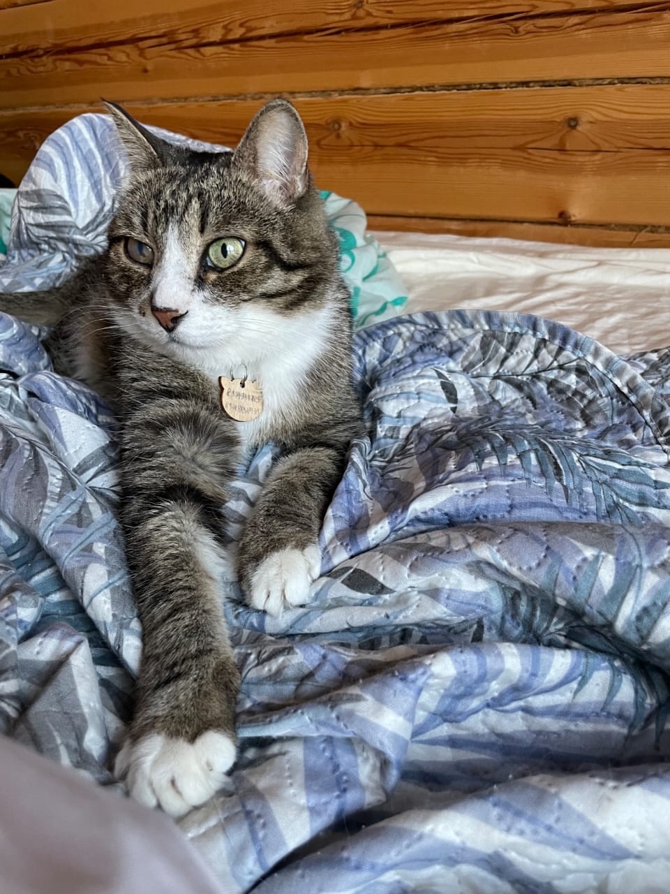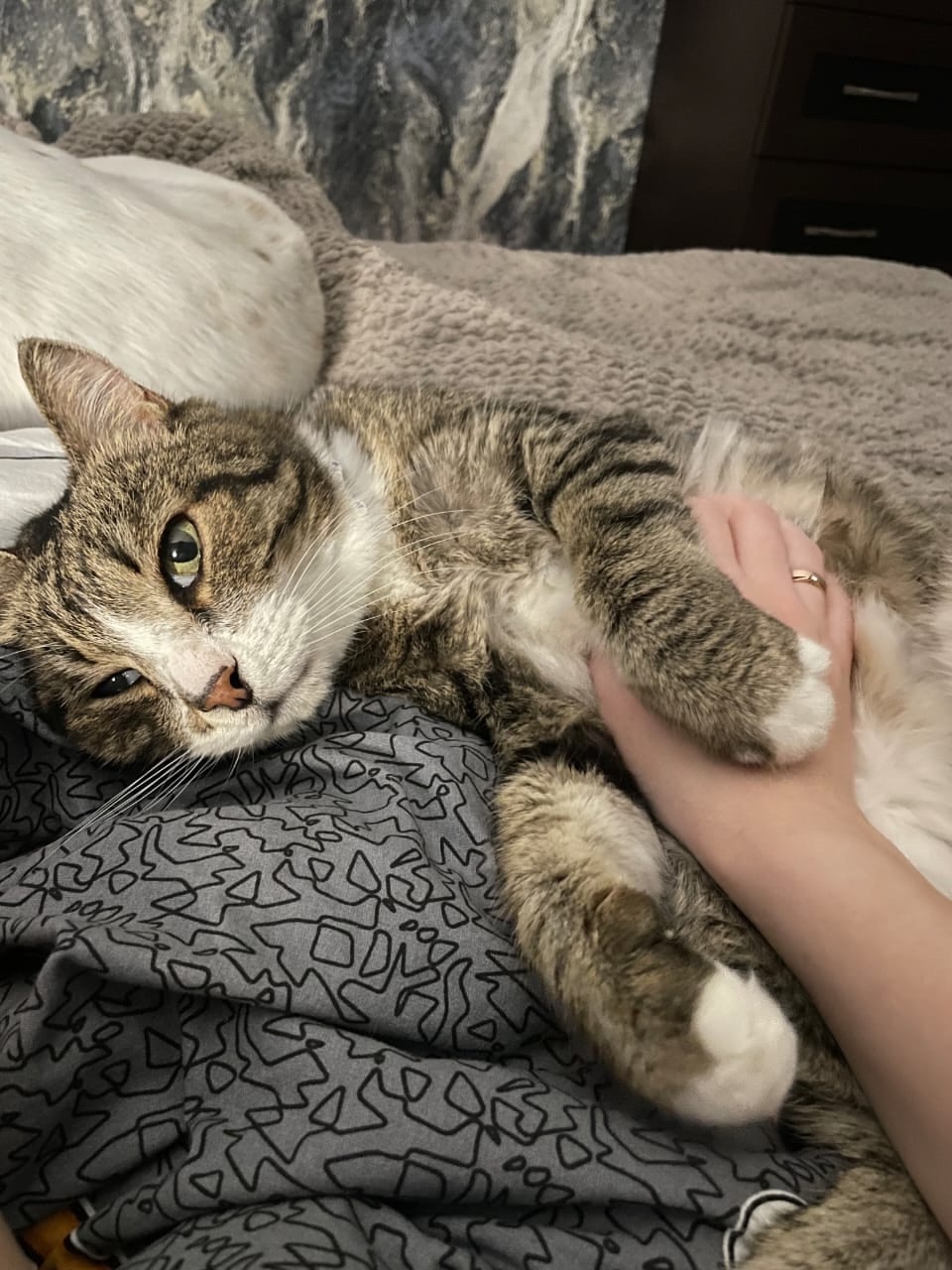 8.08.25 в посёлке Первомайский мкр.Рассвет потерялся кот, кличка Май, окрас зелёный, с белыми тапочками и белым пузиком, а так же белый кончик хвоста. Глаза зелёные.У кота есть ошейник с номерами телефонов хозяев.