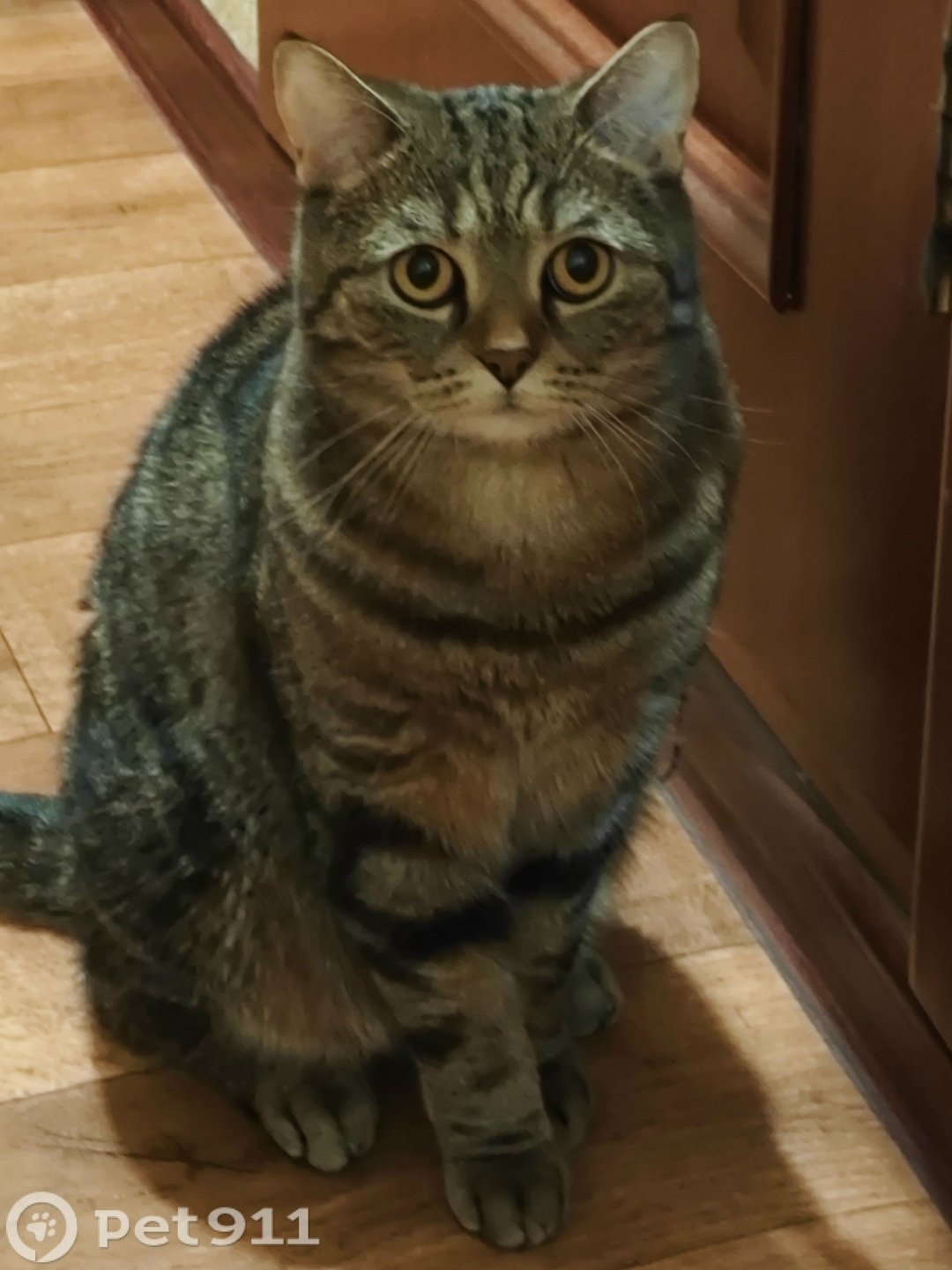 Коричневый окрас, с черным узором и белой мордочкой, хвост с узором в виде колец на конце черный, глаза карие с оттенком зеленого, отзывается на Мили или Миланья