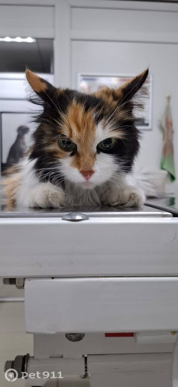 Трехцветная роскошная длинношерстная кошка была эвакуирована с дерева. 4 дня просидела напротив 4-го дома в 85-м квартале (Ангарск). Домашняя, ухоженная. Сейчас находится в приюте Бобик и Барбос.