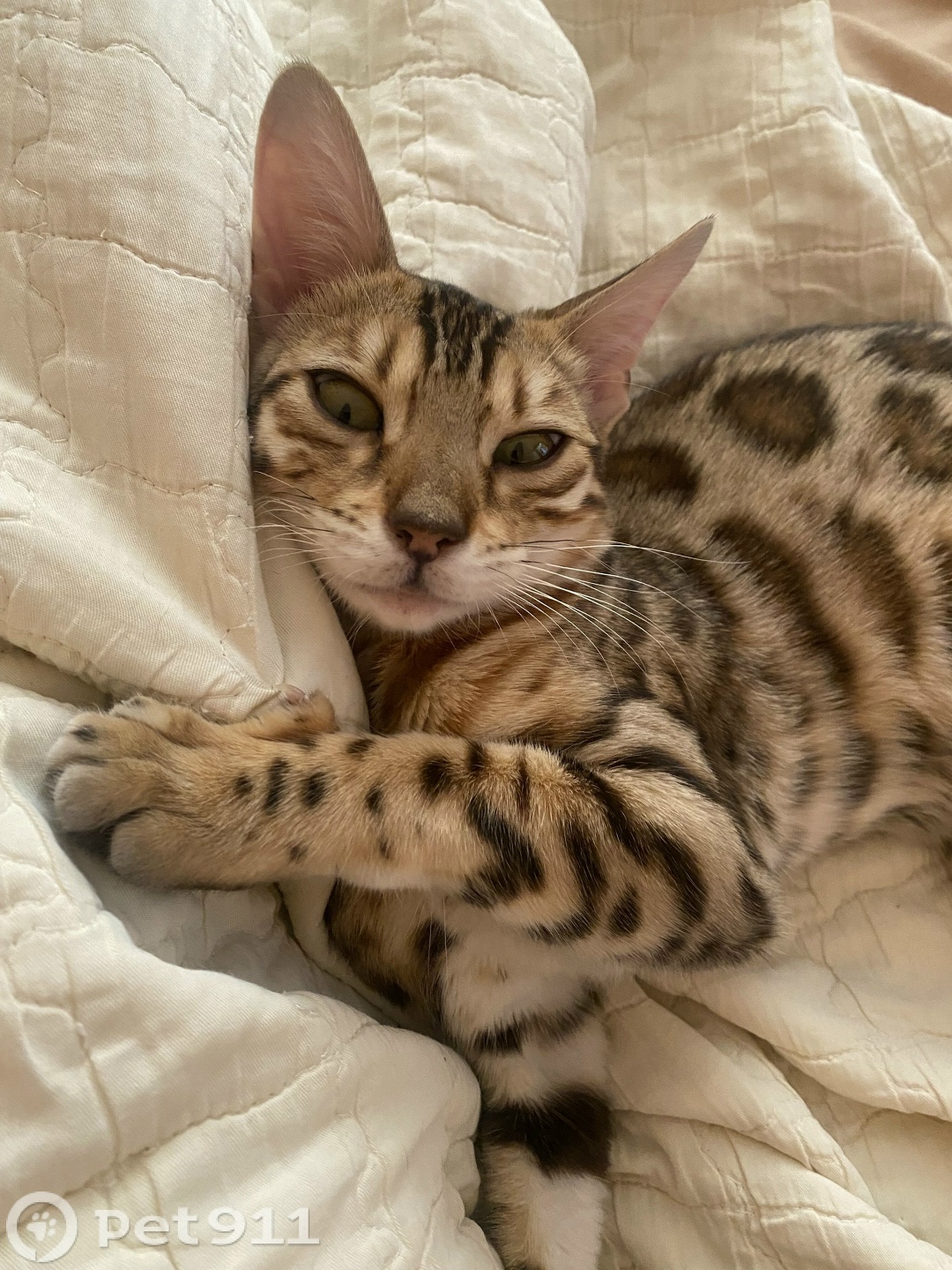 Пропала вечером около 22-23 вечера, выбежала из дома и убежала в неизвестном направлении Никогда так не делала, не понимаю что произошло Пятнистая породистая кошка (бенгальская порода) В целом очень дружелюбна , но осторожна Гуляли только на шлейке и только во дворе дома, окрестности не знает, могла испугаться и заблудится Помогите найти, денежное вознаграждение обеспечено!!!!