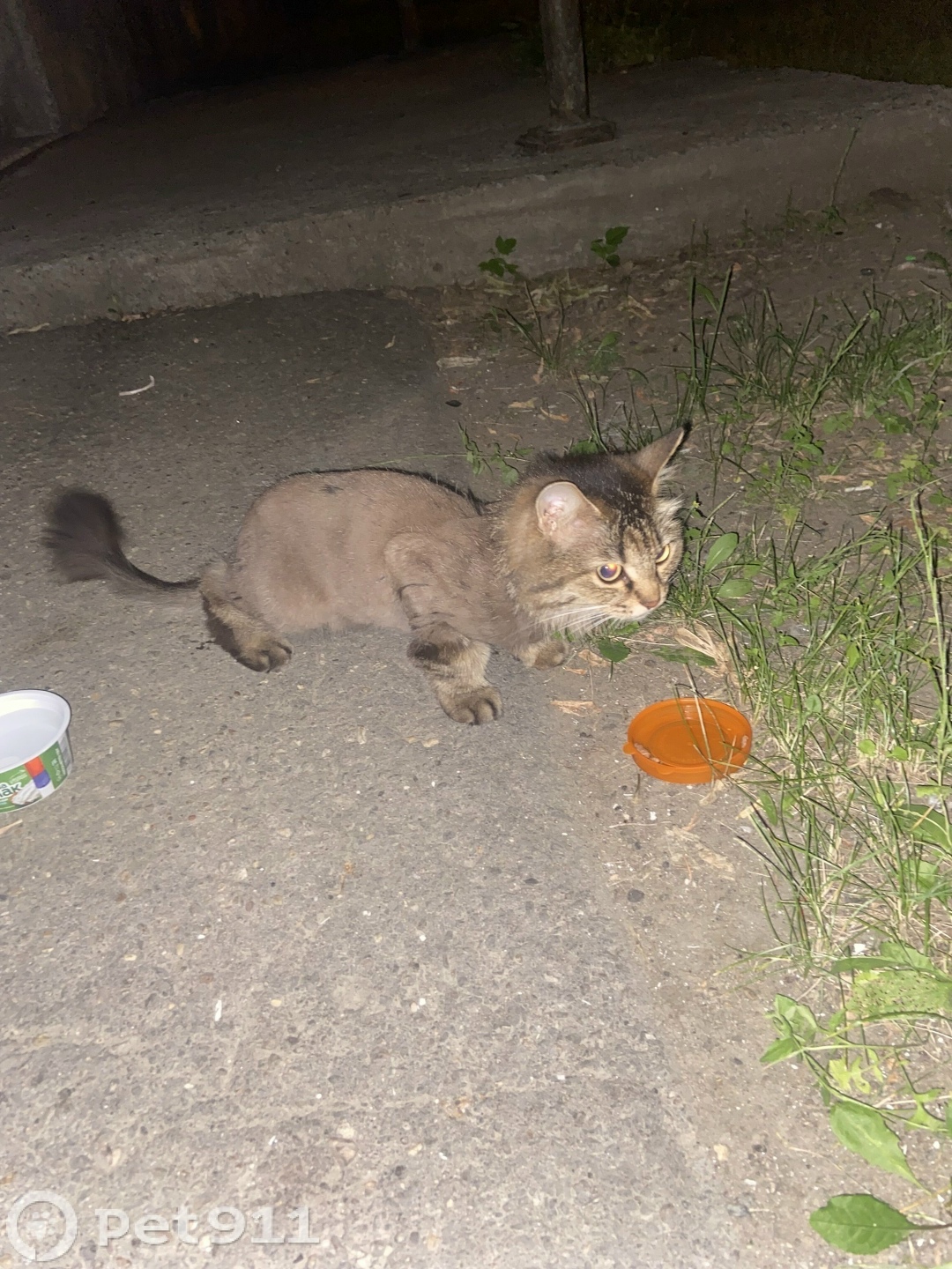 коричневый окрас с черными пятнышками. Выбрито все, кроме головы, кончиков лапок и кончика хвоста. Отзывается на «кис кис» только ночью, очень ласковая.