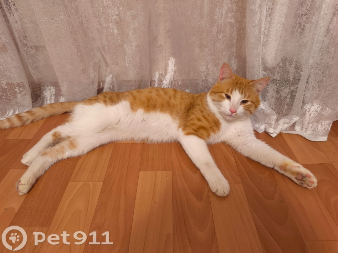 Окрас рыжий с белым. Спина пятнистая рыжая, грудь лапы белые, хвост весь рыжий с светлыми вкраплениями, мордочка белая в районе носика и чуть выше.