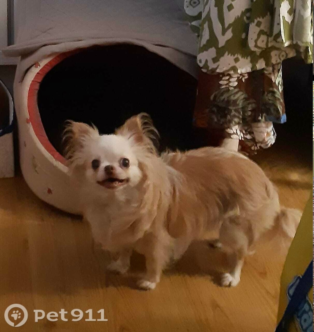собака породы Чихуахуа. Длинношерстная. Окрас светлый, лиловый нос Собаке 13 лет, нуждается в специальном питании и уходе.