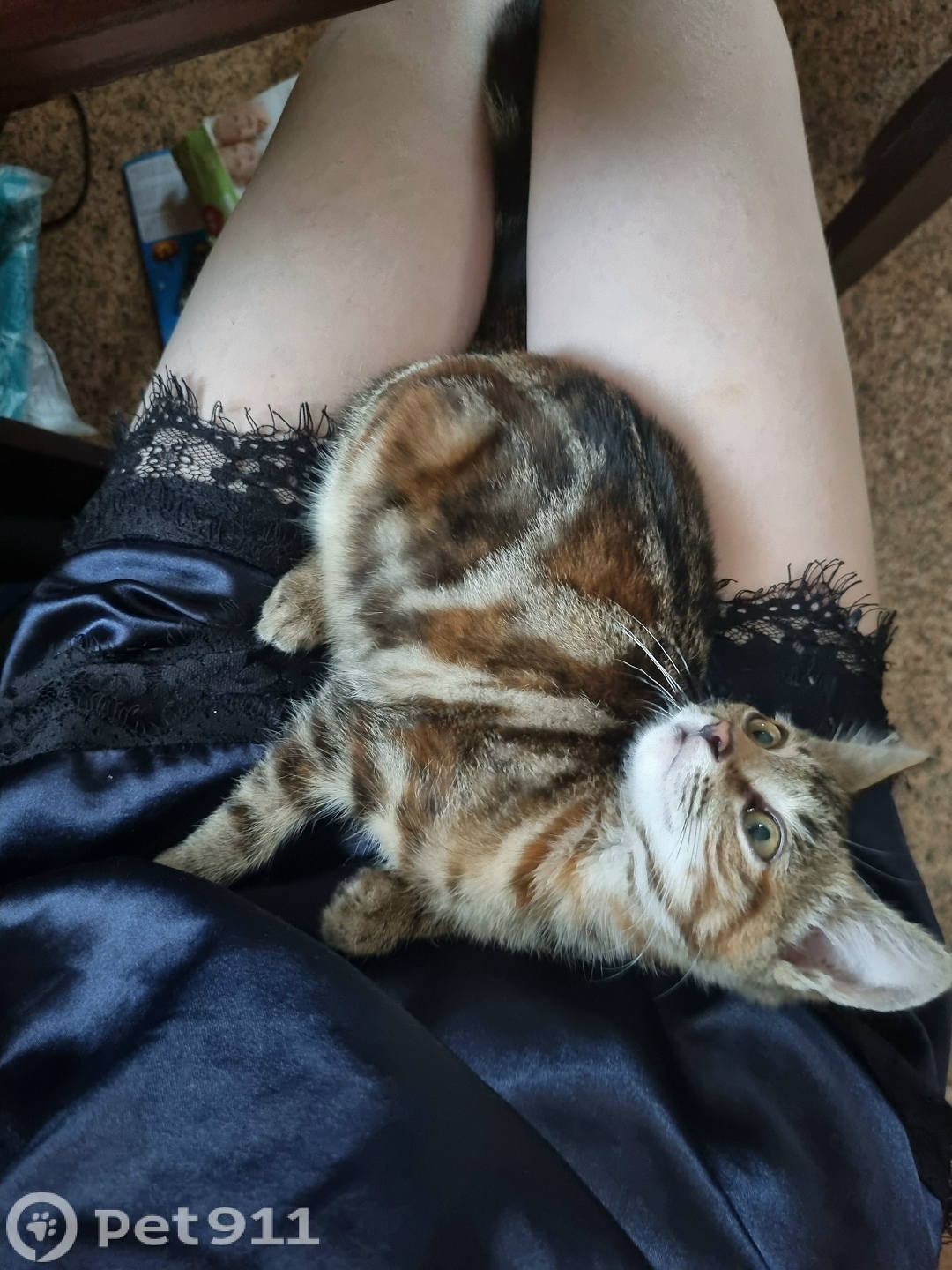 Окрас похож как у бенгальских кошек, но кошечка обычная. Маленькая, как её мама, 7,5 месяцев её возраст, но кажется, что она младше, ласковая, стала гулять с конца августа, выбежала на улицу ночью, несколько дней её видели соседи, но в руки ни кому не пошла, неделю назад была замечена в ближайшем районе, ходили искать, но так и не нашли. Может кто видел или взял себе на передержку.