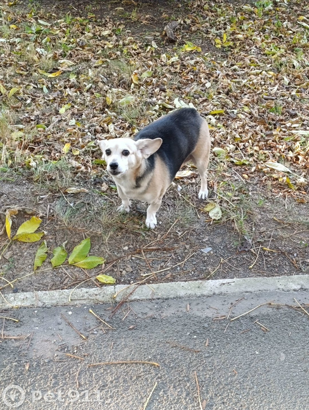 Корги. Выглядит стареньким, скорее всего сломана левая передняя лапа