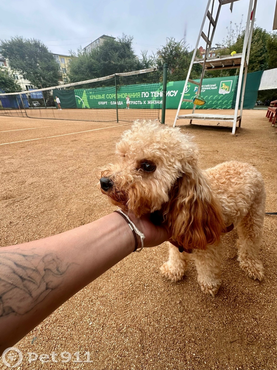 Билли - той пудель. Окрас абрикосовый, на спинке ближе к к хвостику имеется участок темно-коричневой шерсти, убежала в коричневой шлейке. Она очень контактная, добрая и ласковая. Знакомый вышел с ней погулять около подъезда 03.10.25 г в районе 23:00. Он отпустил ее с поводка и залип в телефоне. Занимаясь своими делами, он не заметил как Билли убежала. Сообщил он мне об этом спустя почти сутки.