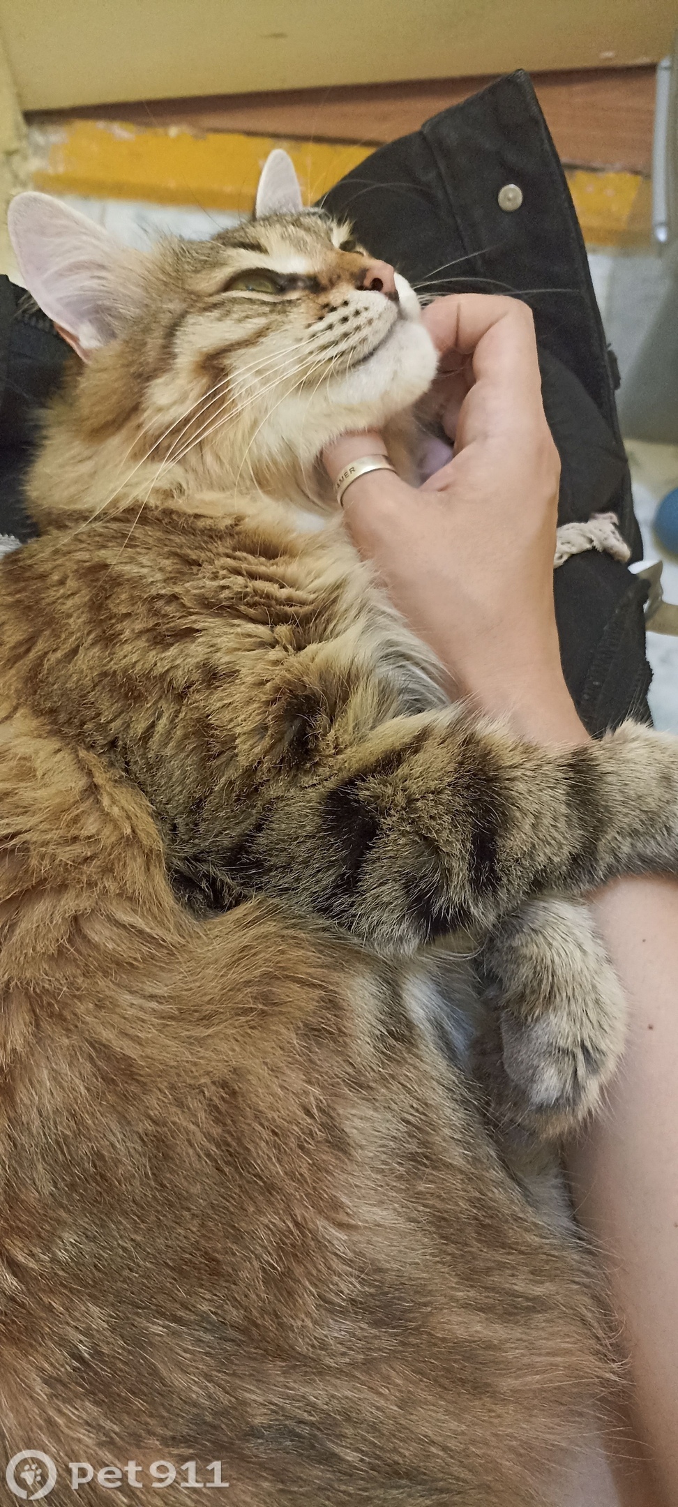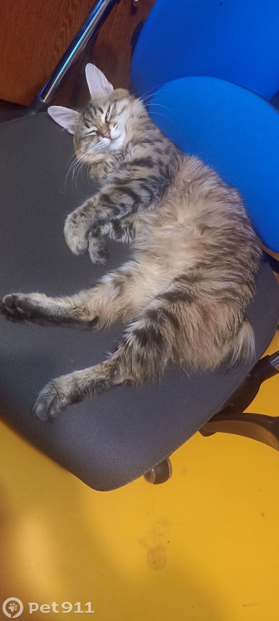 Полосатая, трехцветная. Маленькая, черные пятки. Большие уши, желто-зеленые глаза. Очень пугливая. Без хвоста.