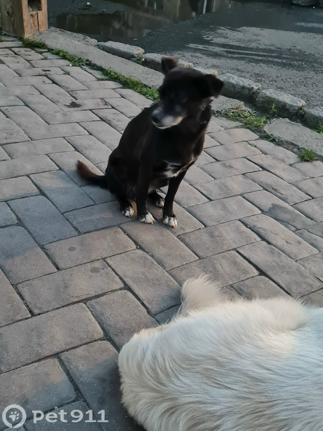 Окрас черный. Белая грудка. Без ошейника. Очень голодная.