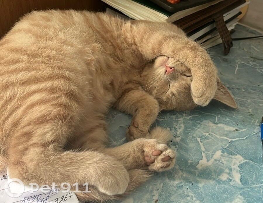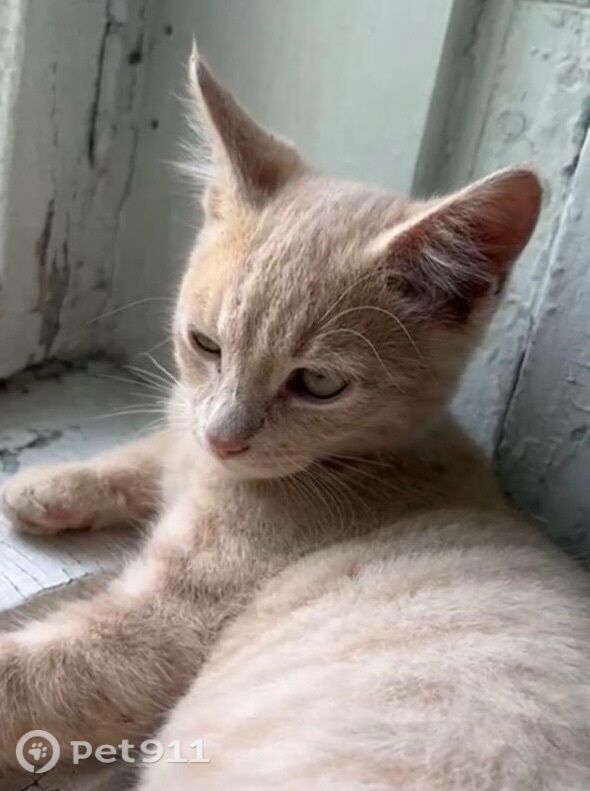 Светло-рыжий,спинка темнее ,чем живот Молодой кот ,5 месяцев На шее черный ошейник от блох