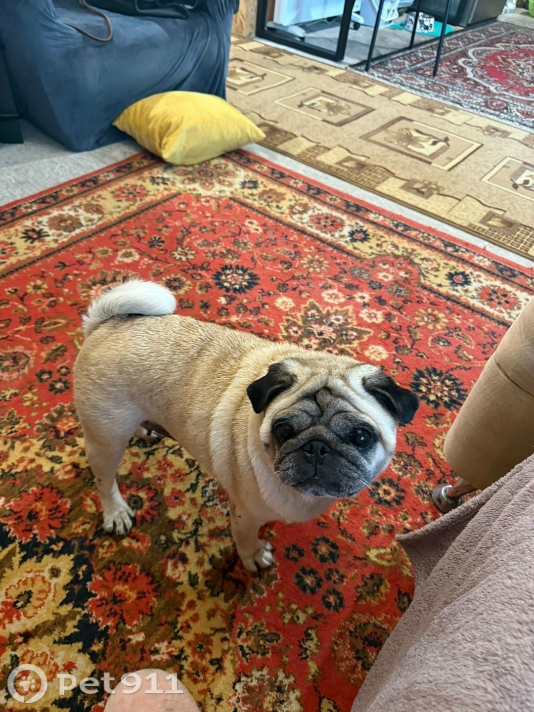 25.08.25 нашли мопса девочку в поселке Соловей ключ СНТ Эврика, просьба владельца звонить по номеру