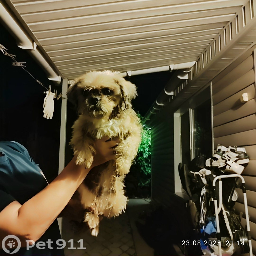 Добрая собака, игривая. Найдена в районе развязки аэропорт, бегала вдоль трассы