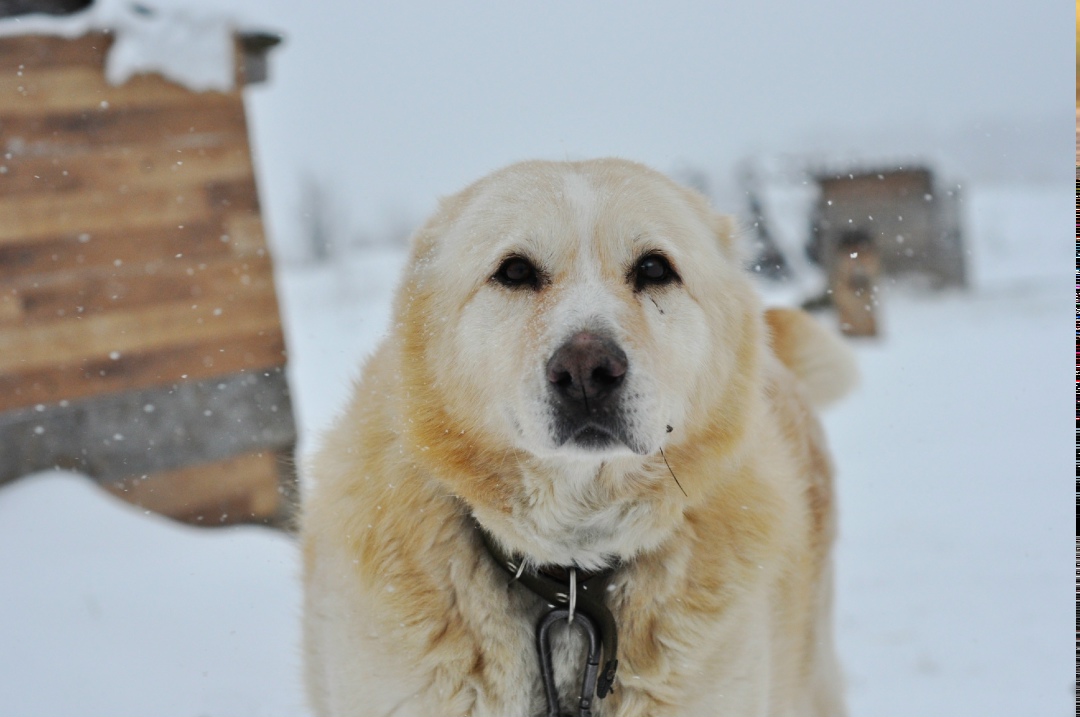 Однажды, несколько лет назад, ее нашли в лютый мороз на улице, явно домашнюю и жившую с человеком который зачем то пытался сделать из нее алабая, купировав уши😢