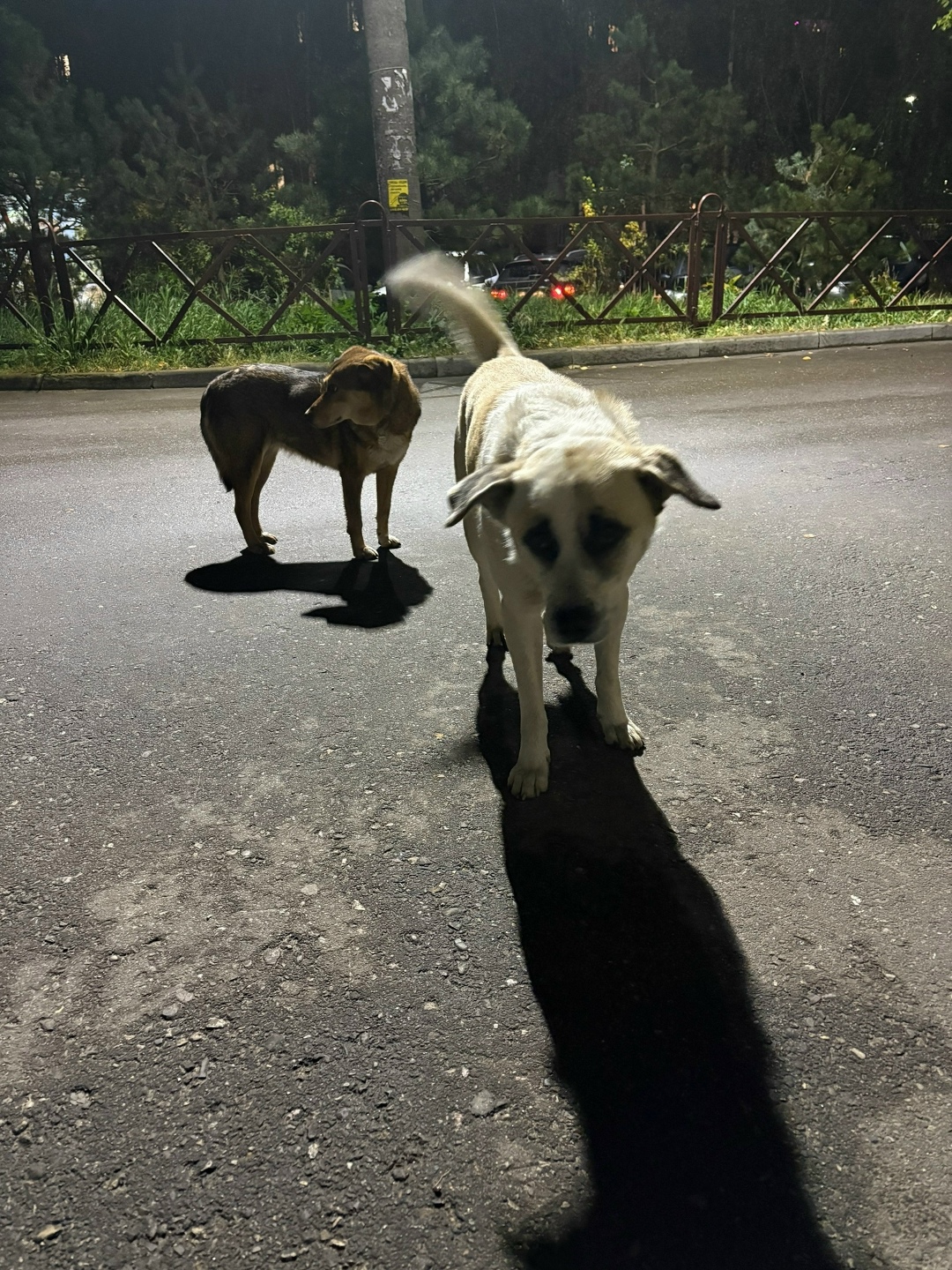 Перебегали дорогу напротив яр сити, в сторону круглосутки магнита. Забрать домой не получилось, отказывались зайти в подъезд. Белая без ошейника, ногладиться давалась, рыжая с ошенийком, но не давалась. Убежали вглубь квартала