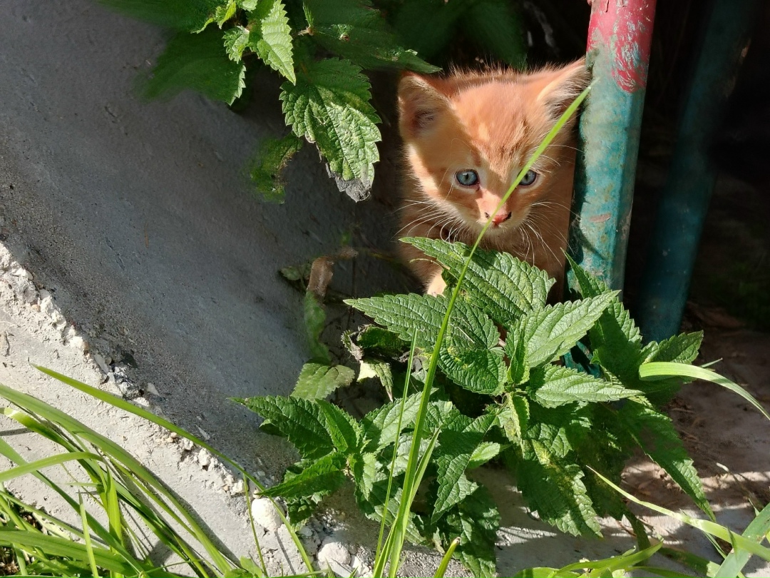 На дачном массиве местная кошечка вывела котят, малышей двое. Чистенькие, ручные, контактные, сами кушают.
