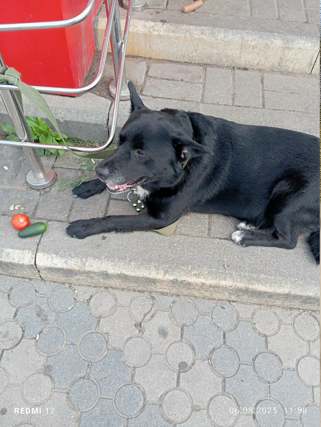 Сидел сутки у магазина, на солнцепёке, привязанный. Пёсик ухоженный, в жутком стрессе. Хощяева, найдитесь!!!