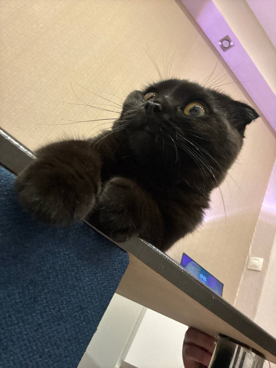 Порода Шотландская вислоухая, окрас черный , глаза янтарно-карие , возраст 9 месяцев .