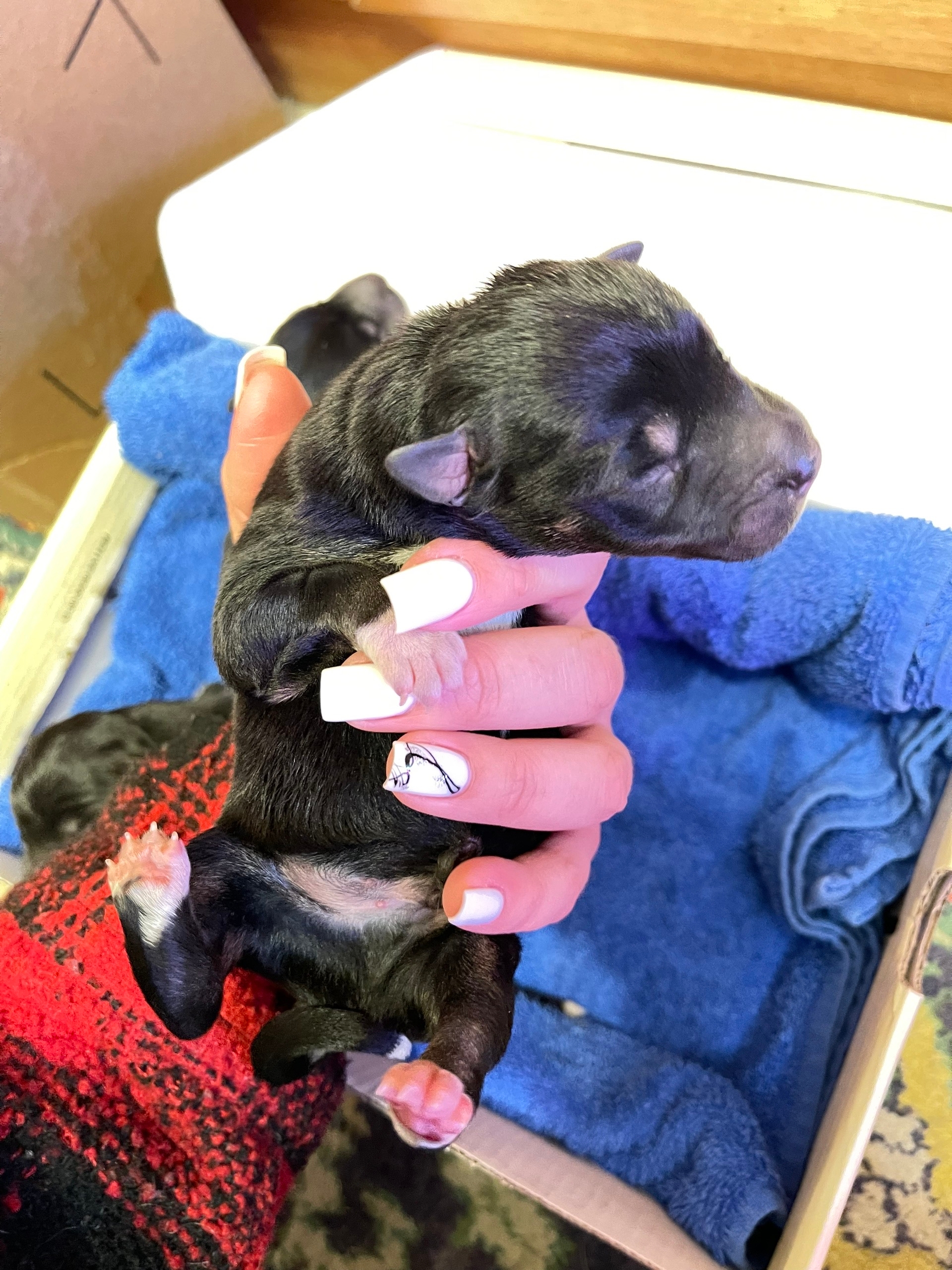 Нашли на улице только что рожденных щенков. Трое мальчишек.