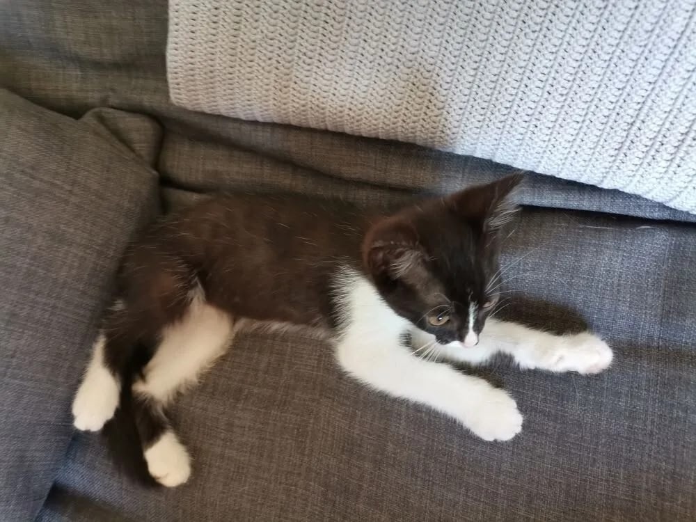 Найден котёнок в кустах на пустыре. Возраст примерный 2-3 мес. Девочка. Лоток освоила сразу. Чистенькая.