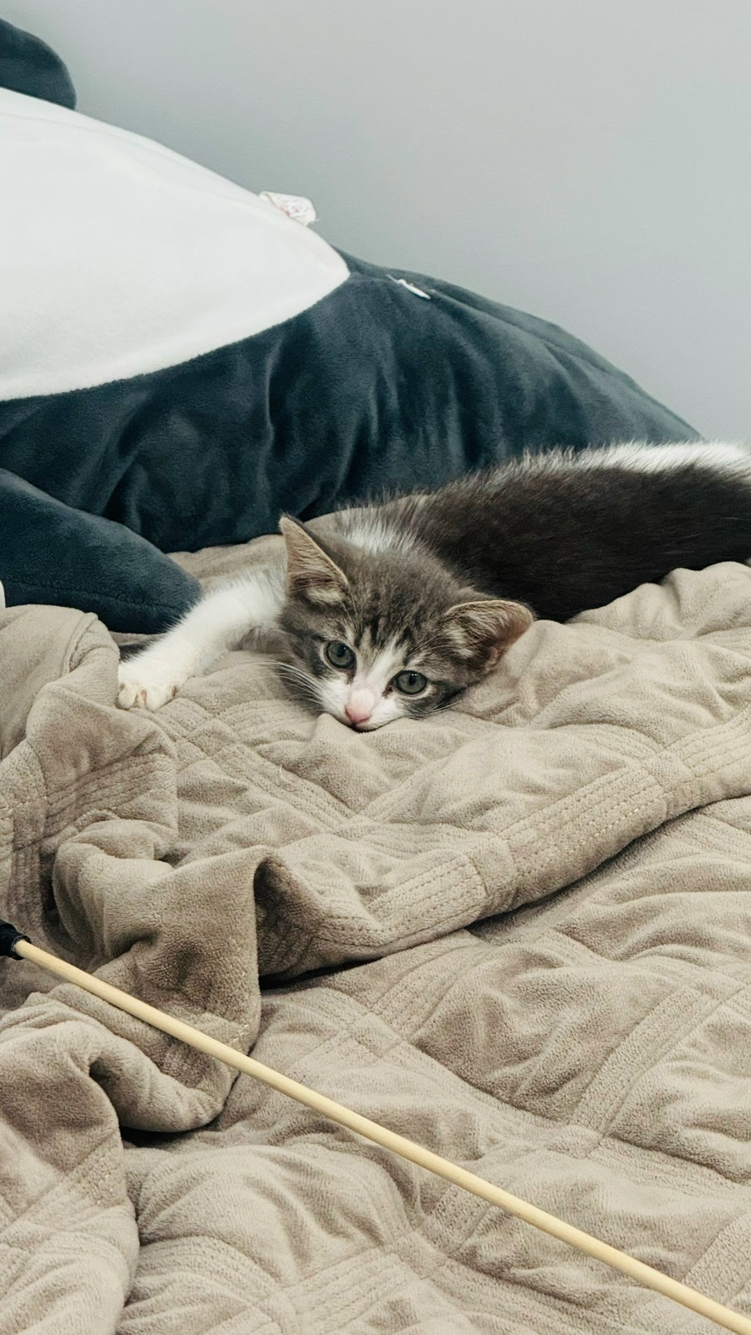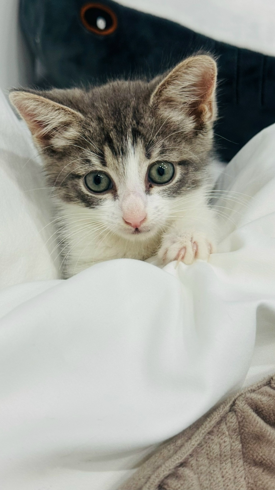 Сейчас она в безопасности. Невероятно ласковая, тихая, доверчивая девочка. Ходит в лоточек, чистенькая, спокойная. Мы уже обработали её от блох, клещей и паразитов — она полностью здорова и готова к новой жизни.