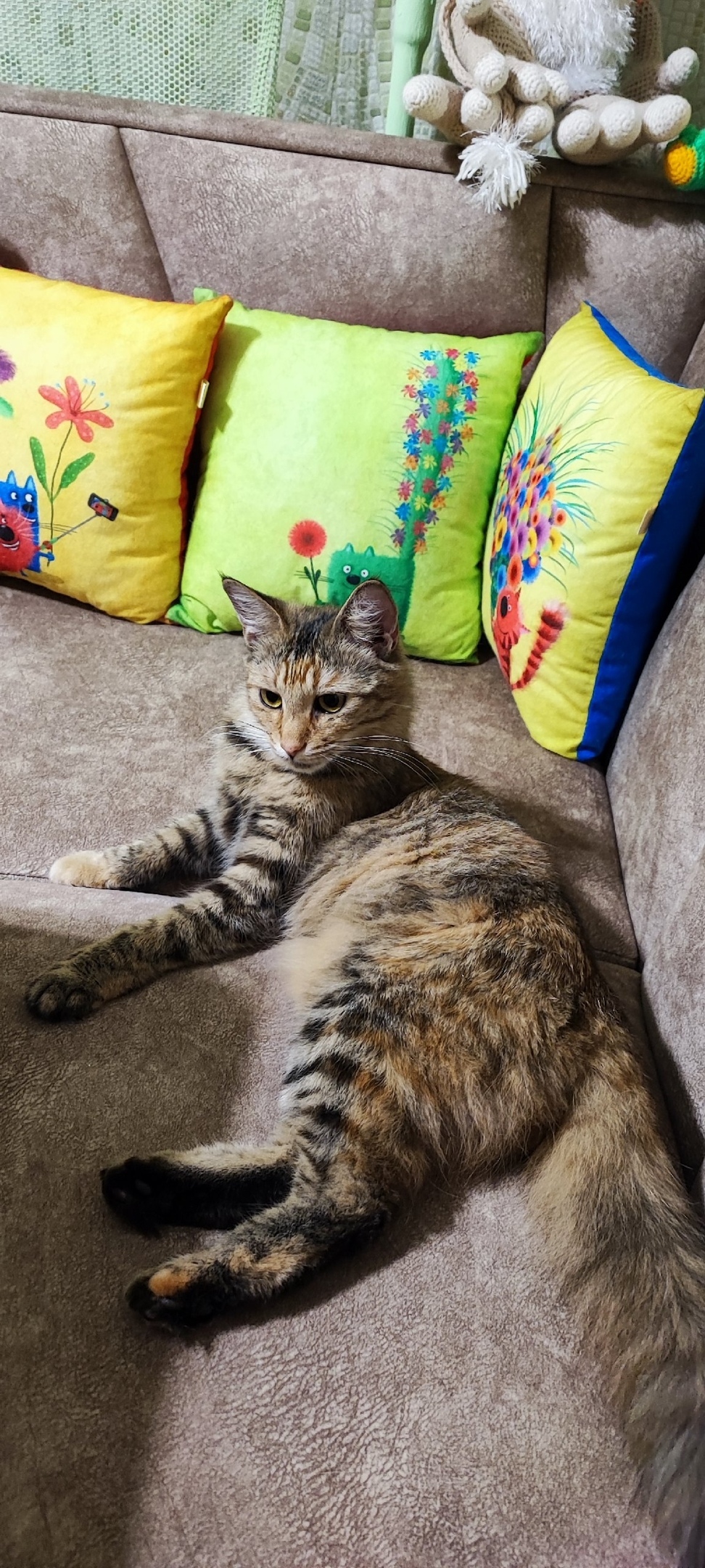 Мира стерилизована, обработана от паразитов. Лоток освоила сразу. Возраст около годика.К сородичам относится положительно.