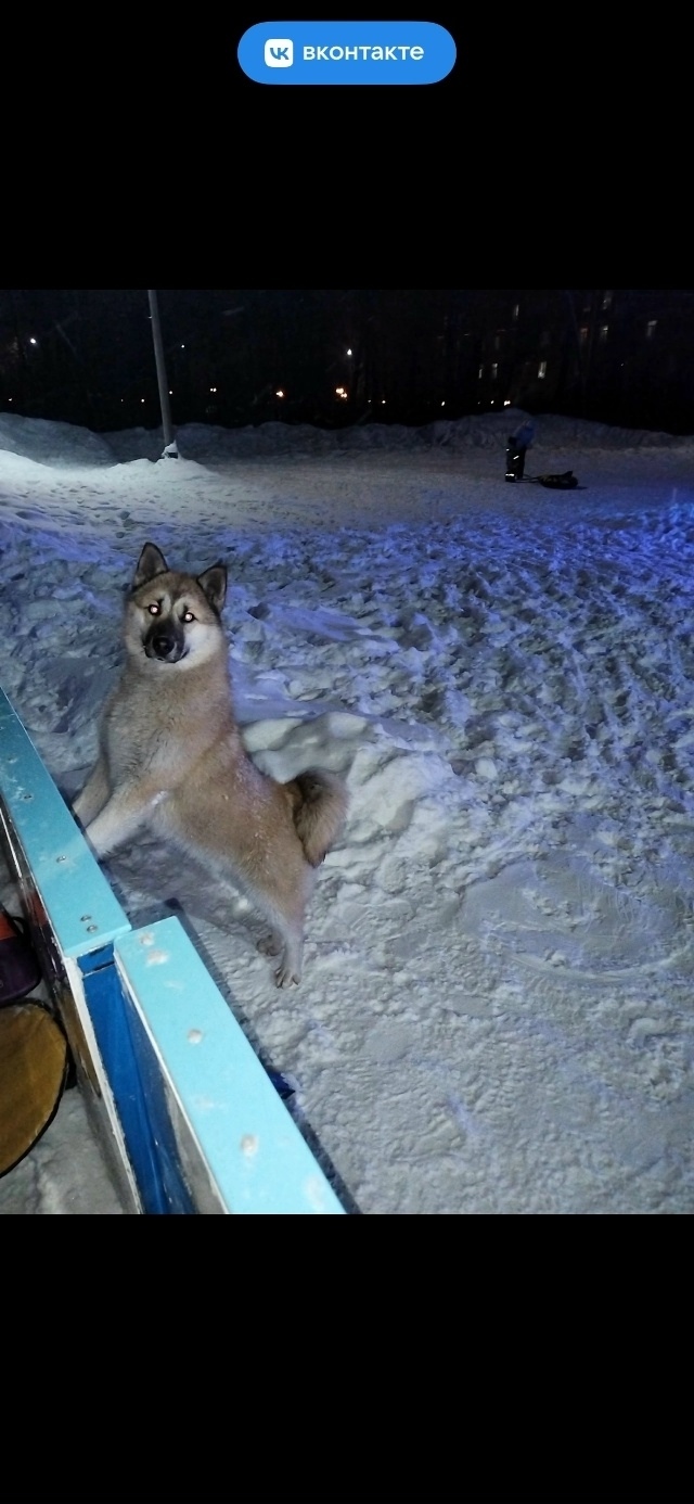 В кировском на горке бегает собака, знает команды, тянется к детям, похожа на лайку)