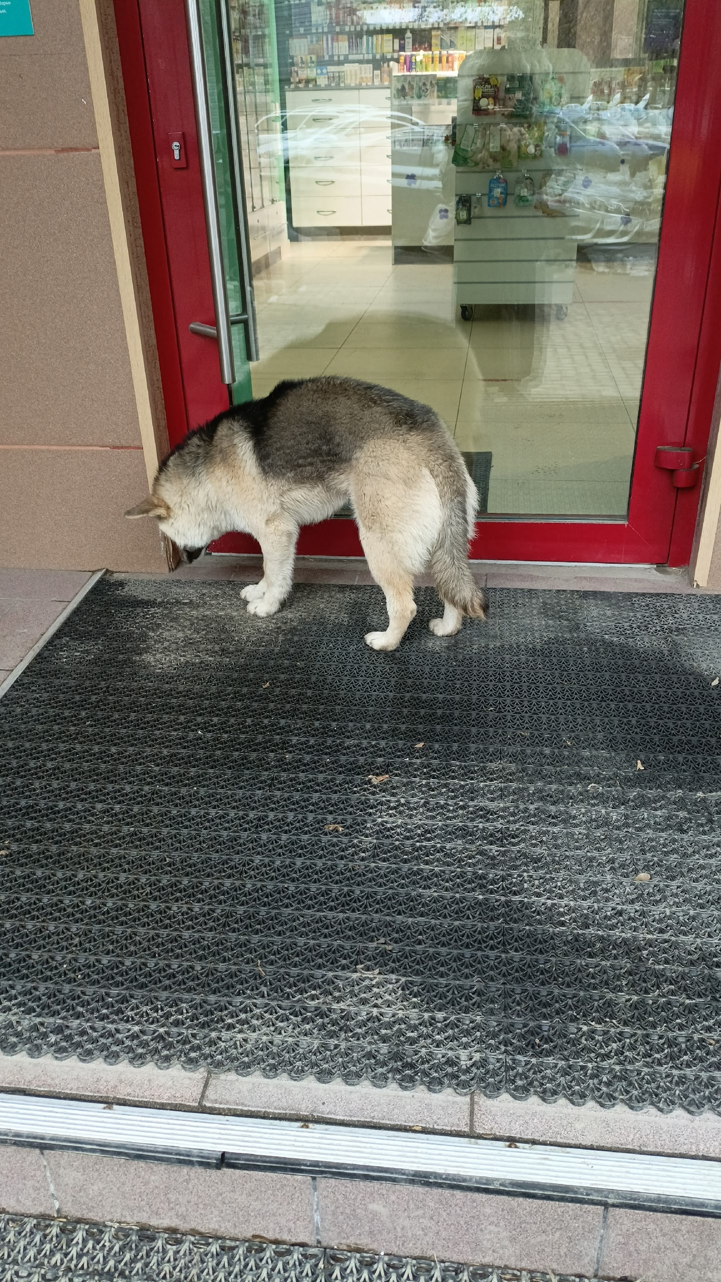 Здравствуйте, сегодня , на Никулина 49, возле аптеки, увидели такую вот прелесть. Видно, что песель домашний, ухоженный, но уж очень грустный. Фармацевт девушка сказала, что кормит и видит, что домашняя собачка. Найдись хозяин.