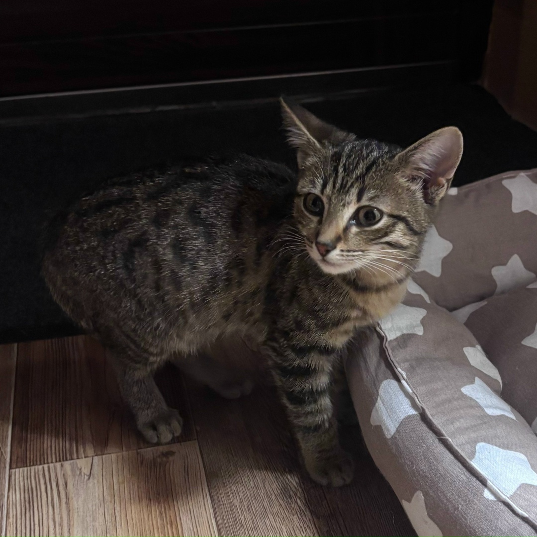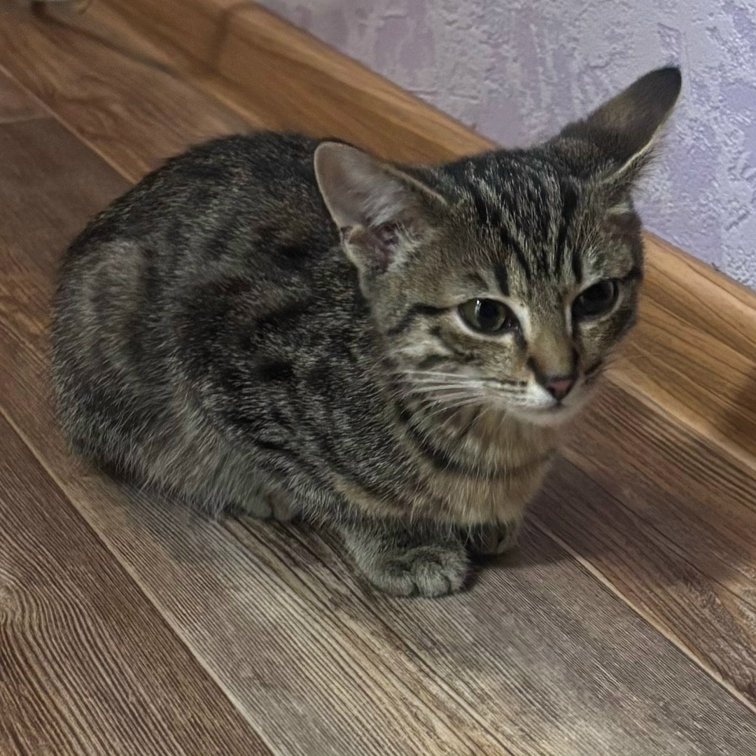 Сегодня в 7 часов вечера найден вот такой котенок, сидел, дрожал и мяукал около магазина бегемаг (пр. Шахтёров, 68), забрала к себе, если кто то потерял это маленькое чудо обращайтесь. Контактное лицо Алена 89132976633.