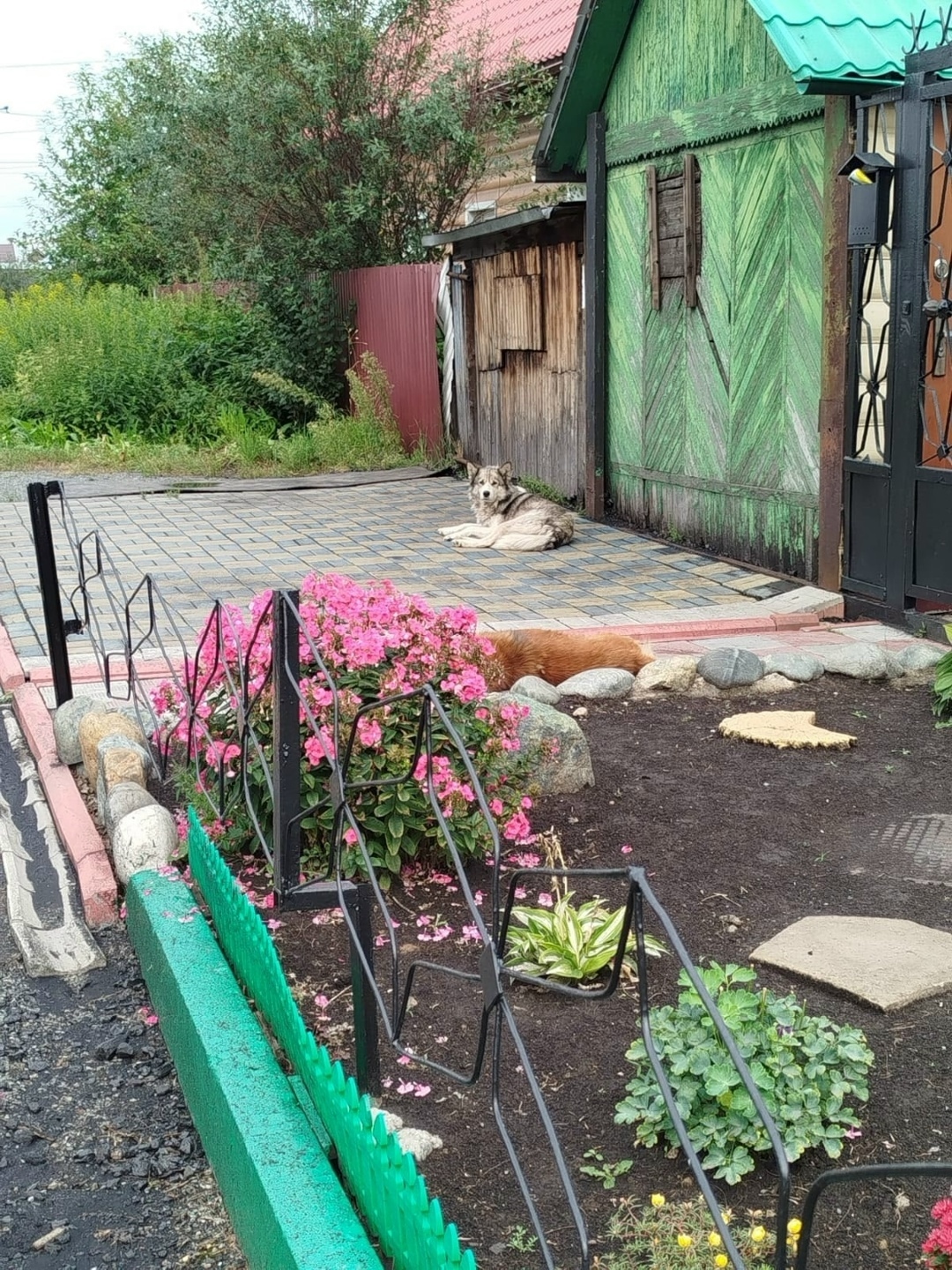 Южный. Чьи собачки лежат? Рыжий пëс,видимо хаски и белый с чëрными пятнами с ошейником и карабином. 89515956961