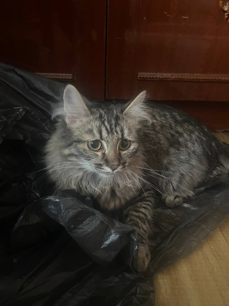 Пропала кошка, зовут Ракета, выбежала из квартиры позавчера в районе ул. Сарыгина 35
