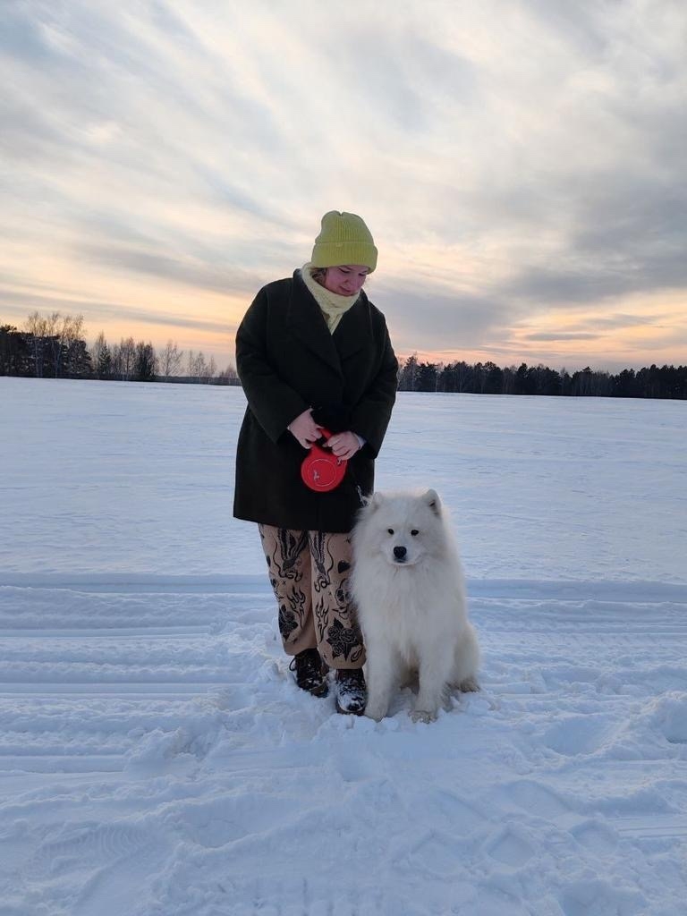 Сегодня в 18:00 в районе Зеленые горки испугался машины и убежал молодой самоед.