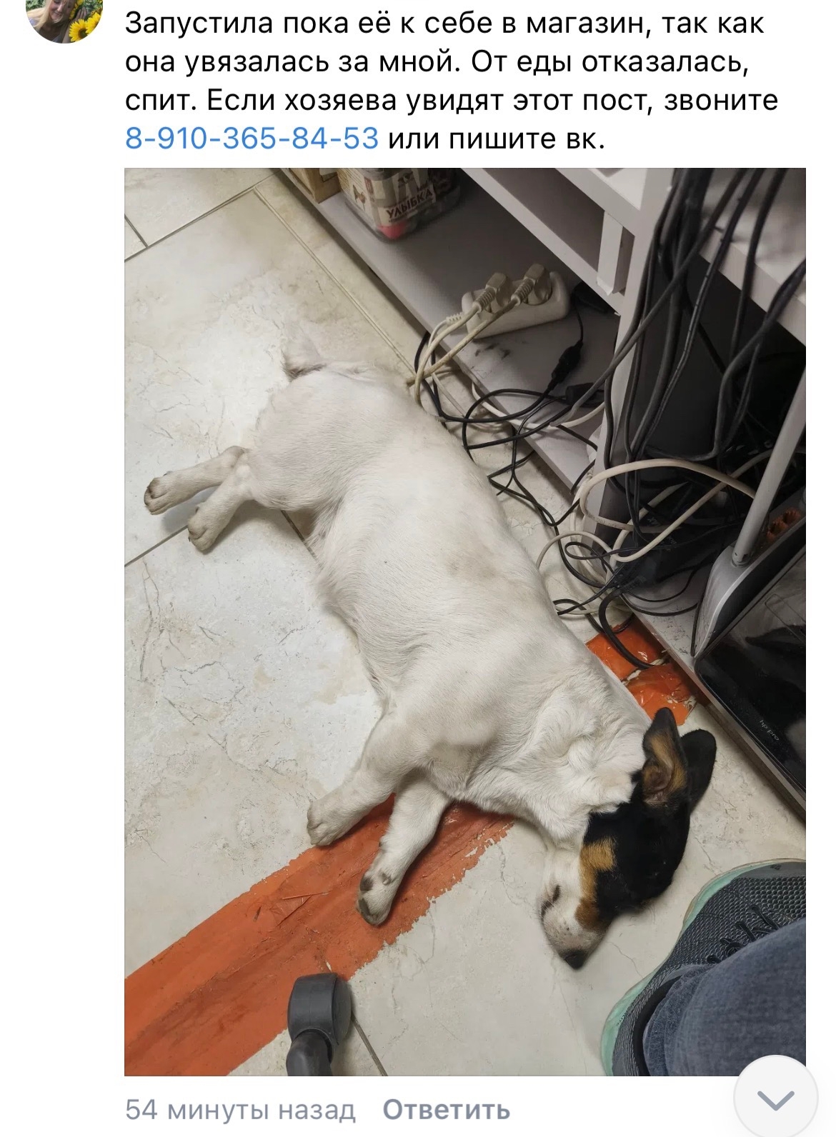 ВНИМАНИЕ! ПОТЕРЯШКА! 🇷🇺🇷🇺🇷🇺 Хозяин отзовись‼ Найдена собака, девочка! Видно, что потеряшка. Пока находится тут. 9103658453