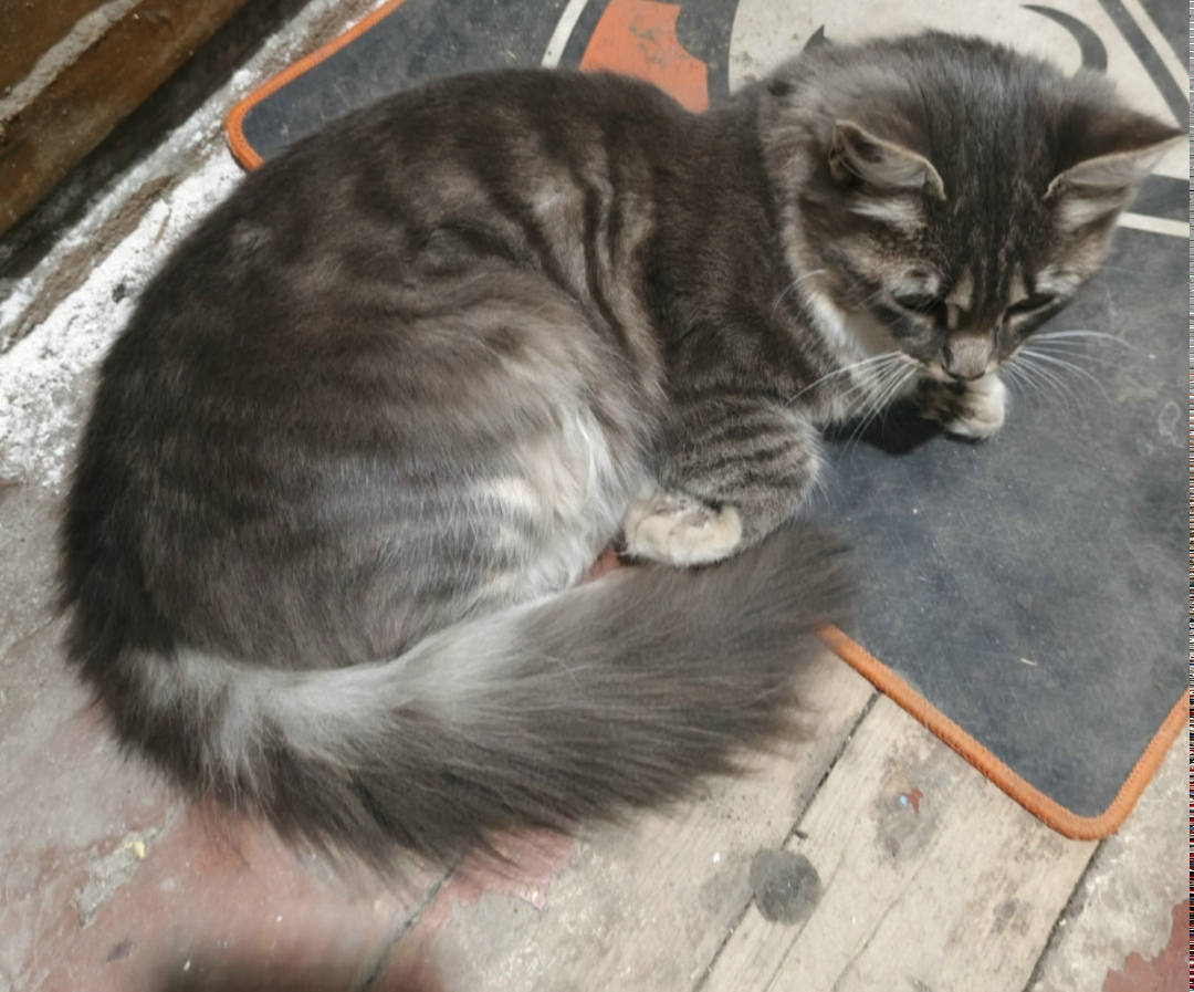 Девочка, очень ласковая, ухоженная (пушистая, шелковистая шерсть, без блох). На вид месяца 4. Видно, что потерялась