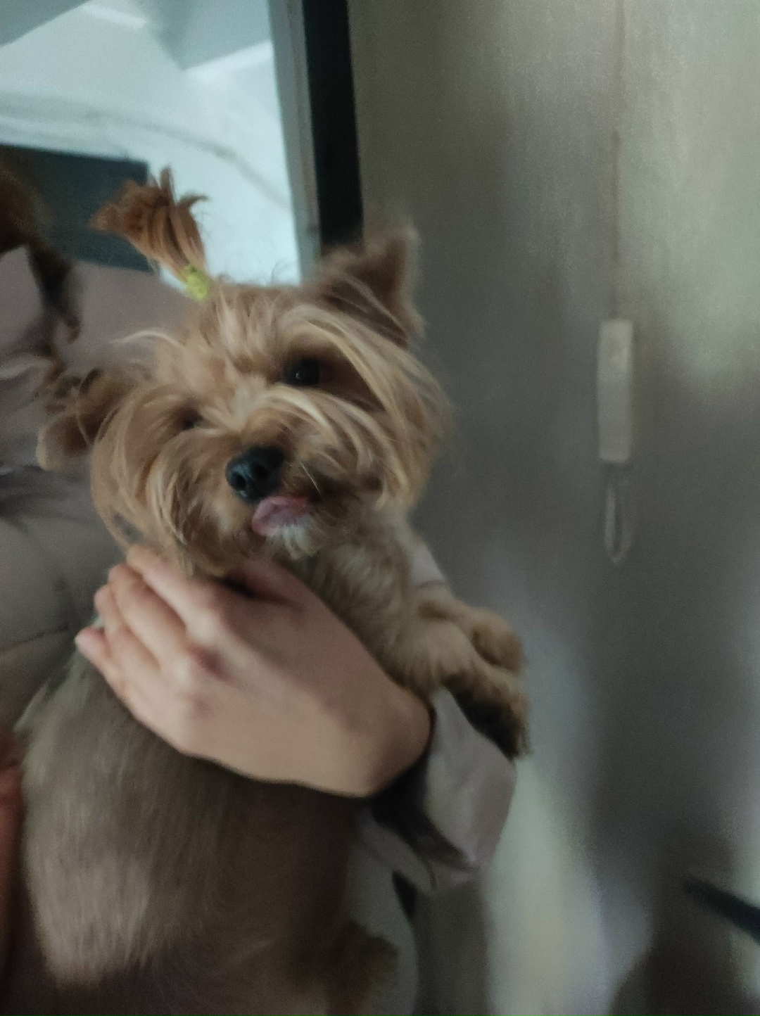 Сегодня в 14:40 Нашлась собачка, йорк, девочка, беременная, выбегала одна на дорогу возле ярче на Войкова 57
